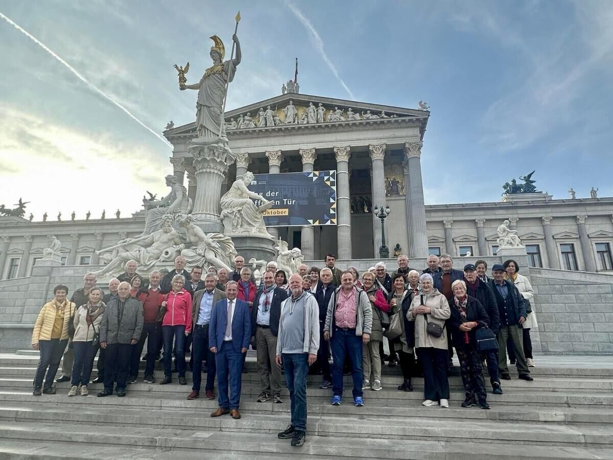 BAD LEONFELDEN. 50 Teilnehmer des Seniorenbundes Bad Leonfelden reisten kürzlich nach Wien, um das Bundeskanzleramt und das Parlament zu besichtigen. Dort traf man sich auch mit der aus Walding stammenden Staatssekretärin Claudia Plakolm und dem Nationalratsabgeordneten Michael Hammer, Bürgermeister in Altenberg, zum Gespräch.