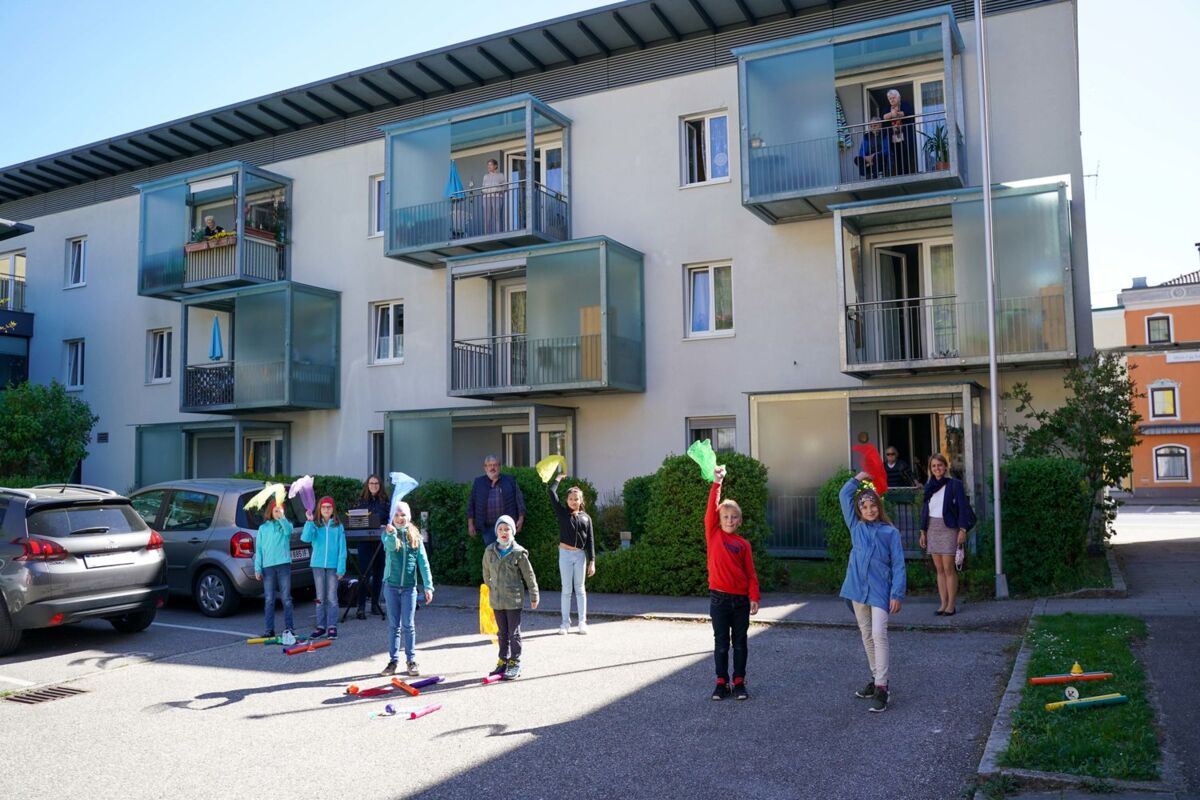 HELPFAU-UTTENDORF. Während der Corona-Pandemie galt in Alten- und Pflegeheimen seit Mitte März striktes Besuchsverbot. Um für eine wenig Aufheiterung und Ablenkung zu sorgen, singen die Schüler der Volksschule Helpfau-Uttendorf in Kooperation mit dem Roten Kreuz für die Bewohner des Betreuten Wohnens.