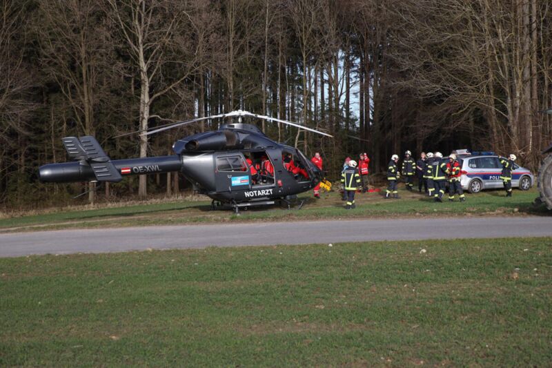 Rettungskräfte-Großaufgebot bei Forstunfall in Niederthalheim