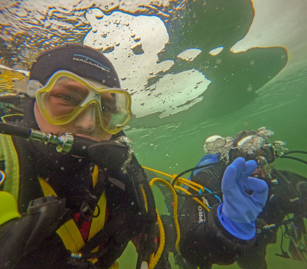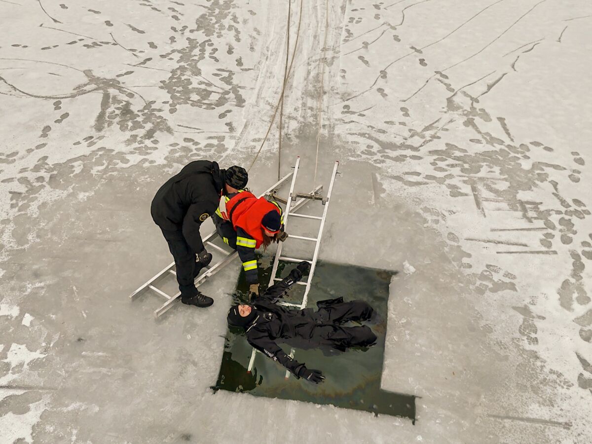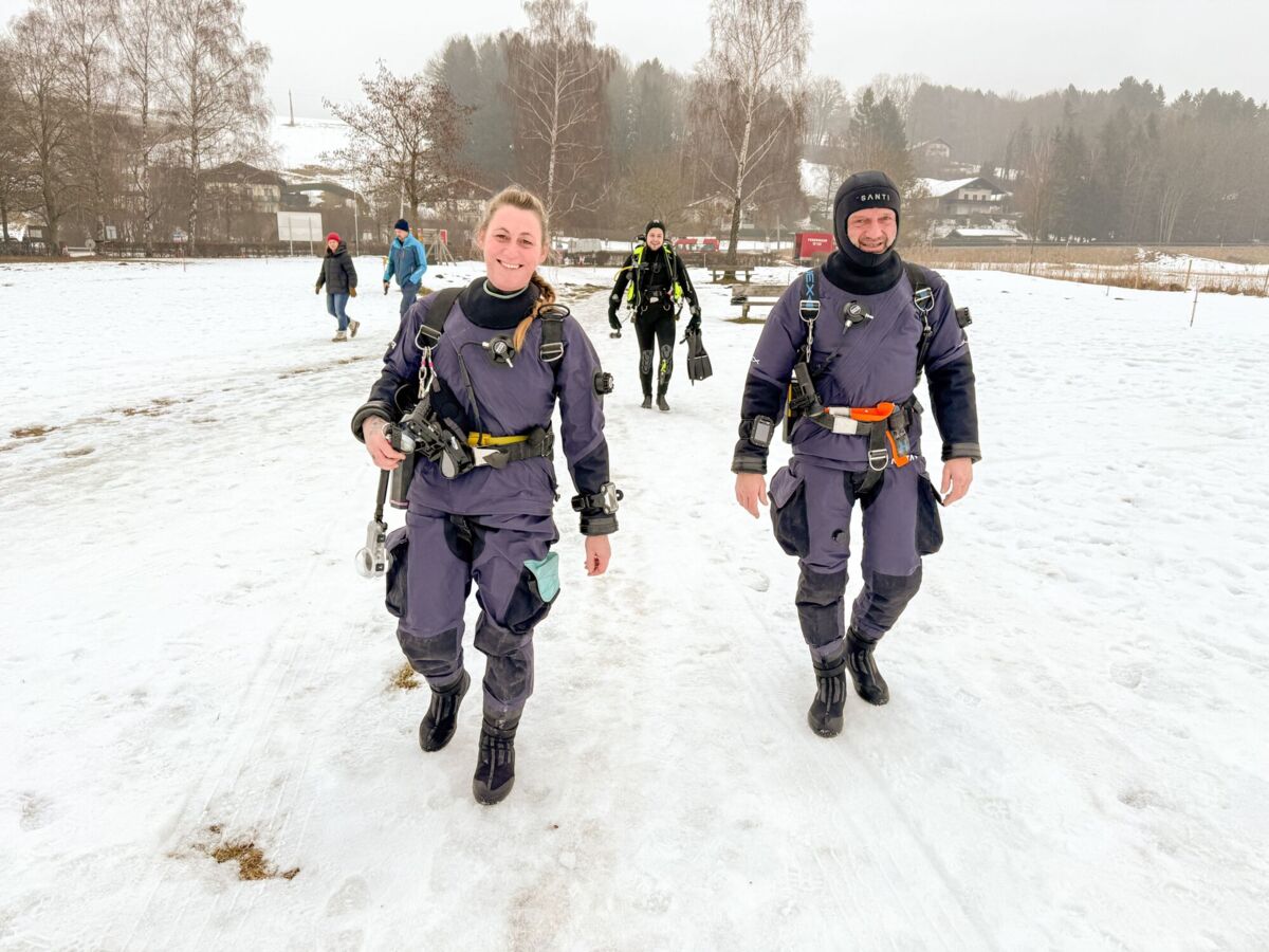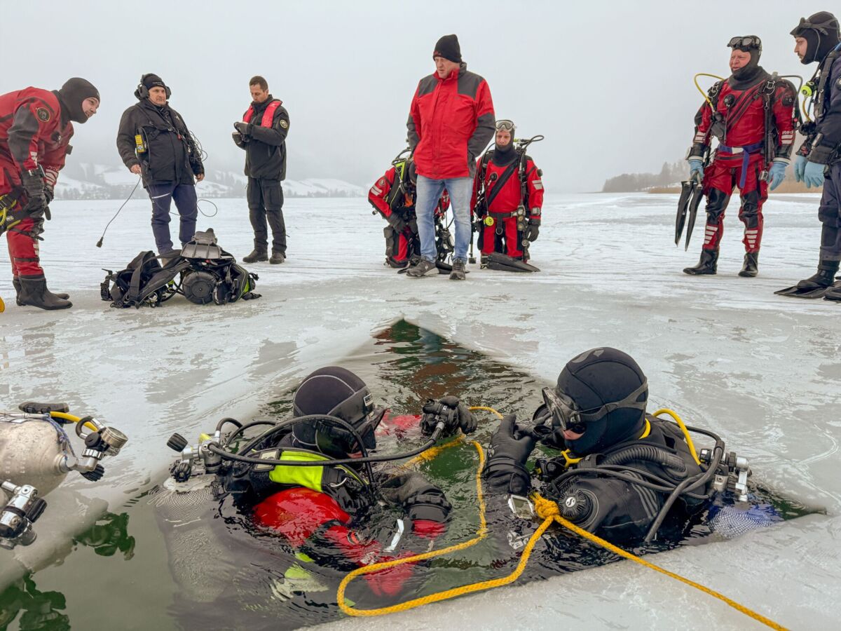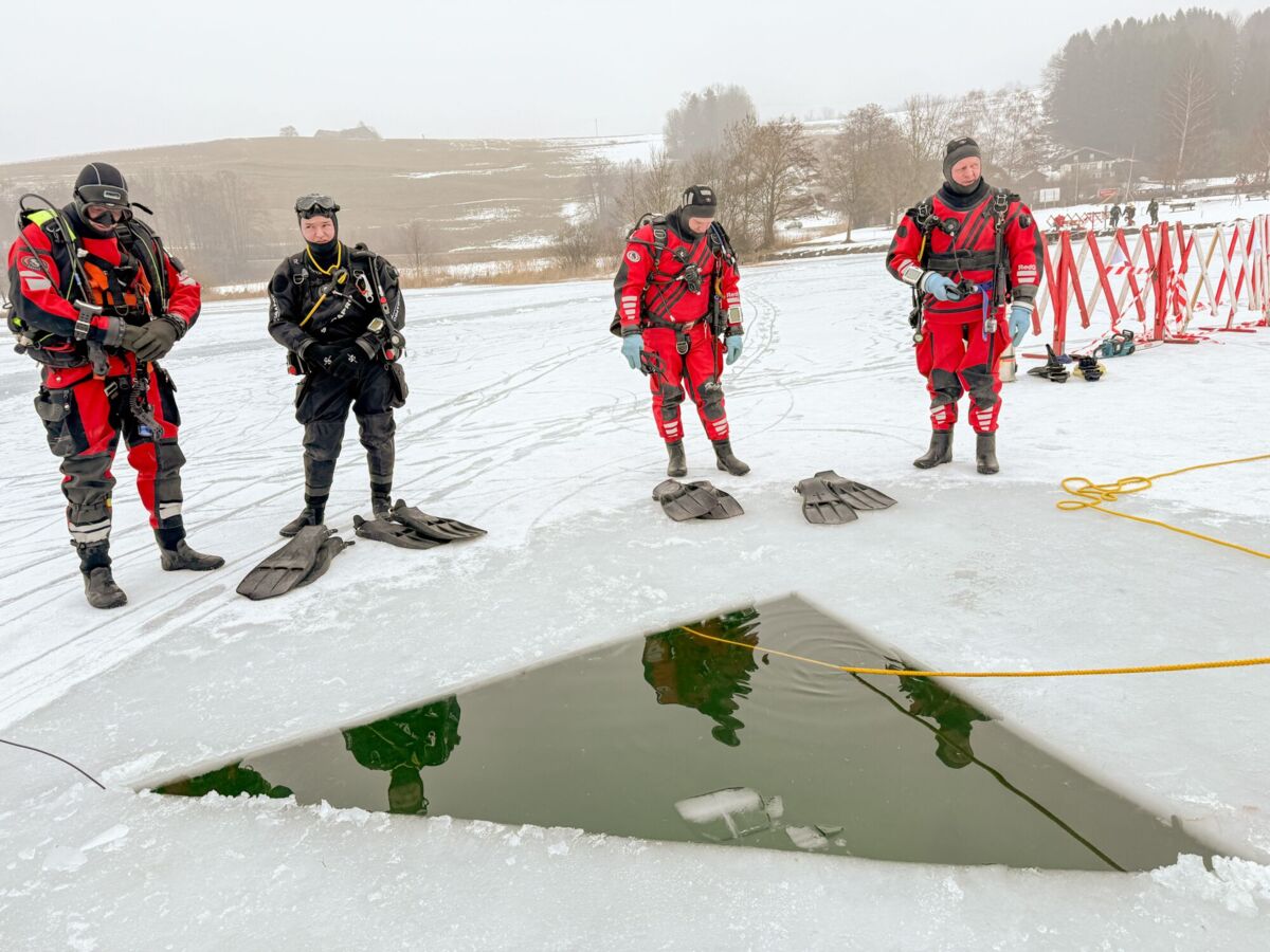 Feuerwehrtaucher unter dem Eis