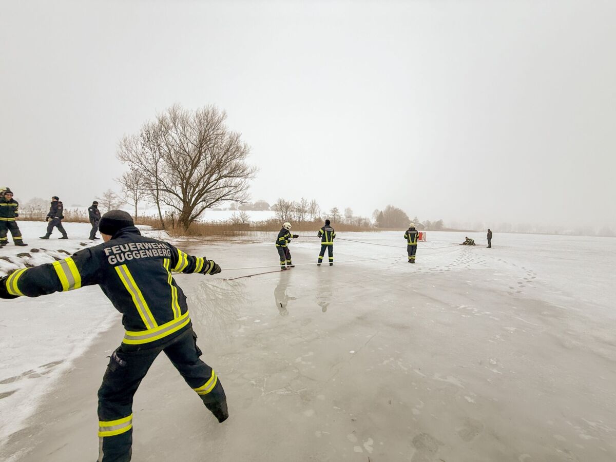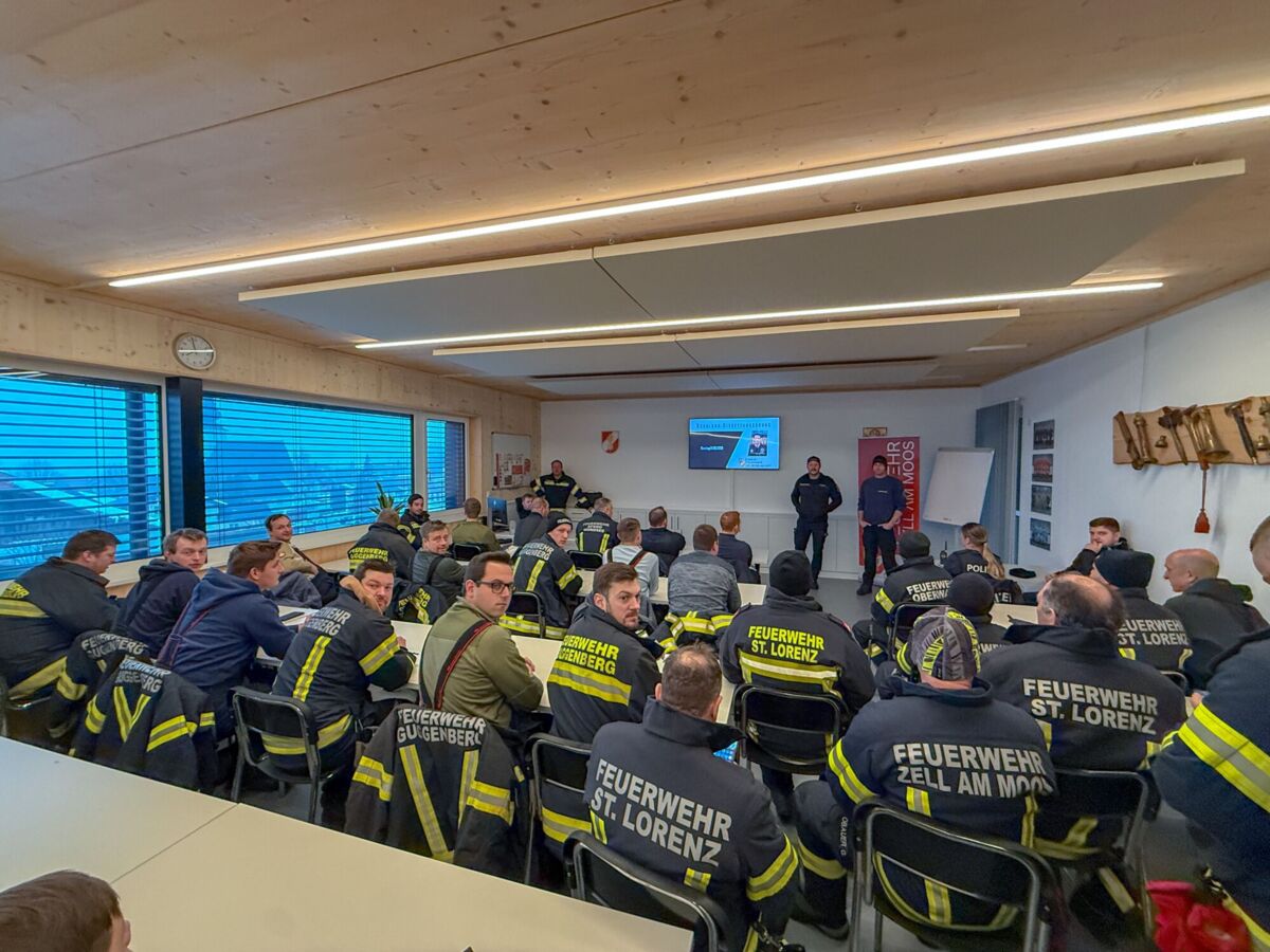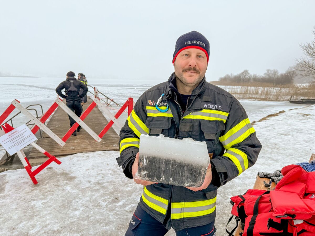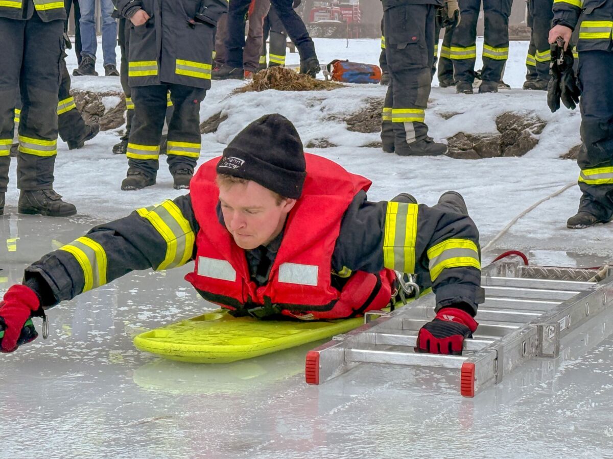 Der Feuerwehrtaucher und Tauchgruppenleiter Jonathan Hansel schulte und vertiefte das vorhandene Wissen der Einsatzkräfte zum Thema Eisrettung, Unterkühlung und Belastbarkeit der Eisfläche. Bevor es zu den Praxisübungen auf den Irrsee ging, berichtete noch der Polizist, der versucht hatte, die eingebrochenen Frauen zu retten von der Rettungsaktion.