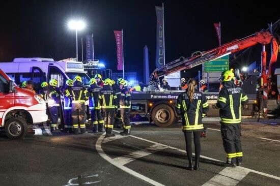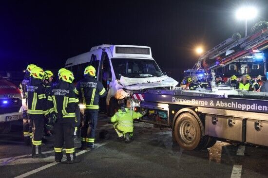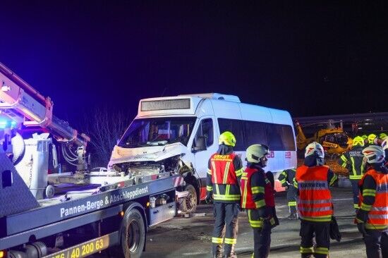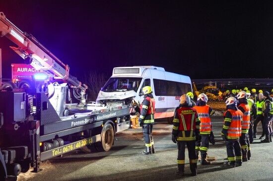 Die Einsatzkräfte von vier Feuerwehren wurden zur Personenrettung an die Einsatzstelle alarmiert, ebenso Rettungsfahrzeuge und der Notarzthubschrauber Christophorus 14. Nach Abschluss der Rettungsarbeiten führten die Kräfte der Feuerwehren gemeinsam mit dem verständigten Abschleppunternehmen die Aufräumarbeiten an der Unfallstelle durch. Ob und wie viele Personen verletzt wurden, ist derzeit noch unbekannt.