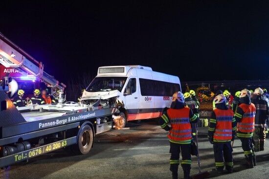 Schwerer Unfall zwischen Linienbus und Sattelzug bei Lenzing an der Ager