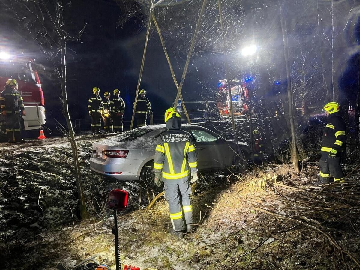 Die Feuerwehr Frankenburg konnte das Fahrzeug per Kran bergen. Verletzt wurde niemand. Die Unfallstelle war für die Dauer des Einsatzes erschwert passierbar.