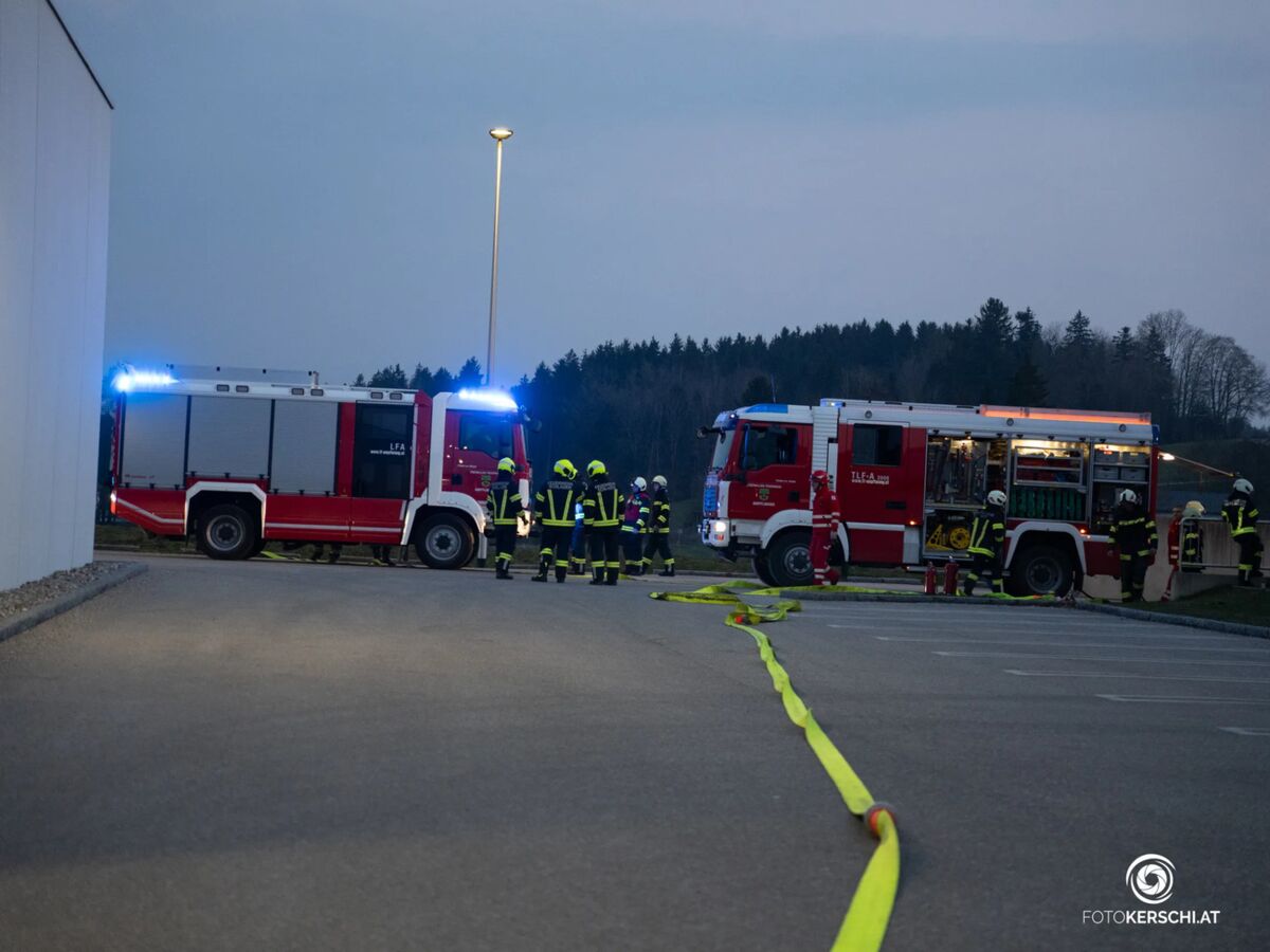 Als die Einsatzkräfte eintrafen, war rasch klar, dass ein zügiges Vorgehen notwendig war, um ein Übergreifen der Flammen auf angrenzende Bereiche des Betriebes zu verhindern.