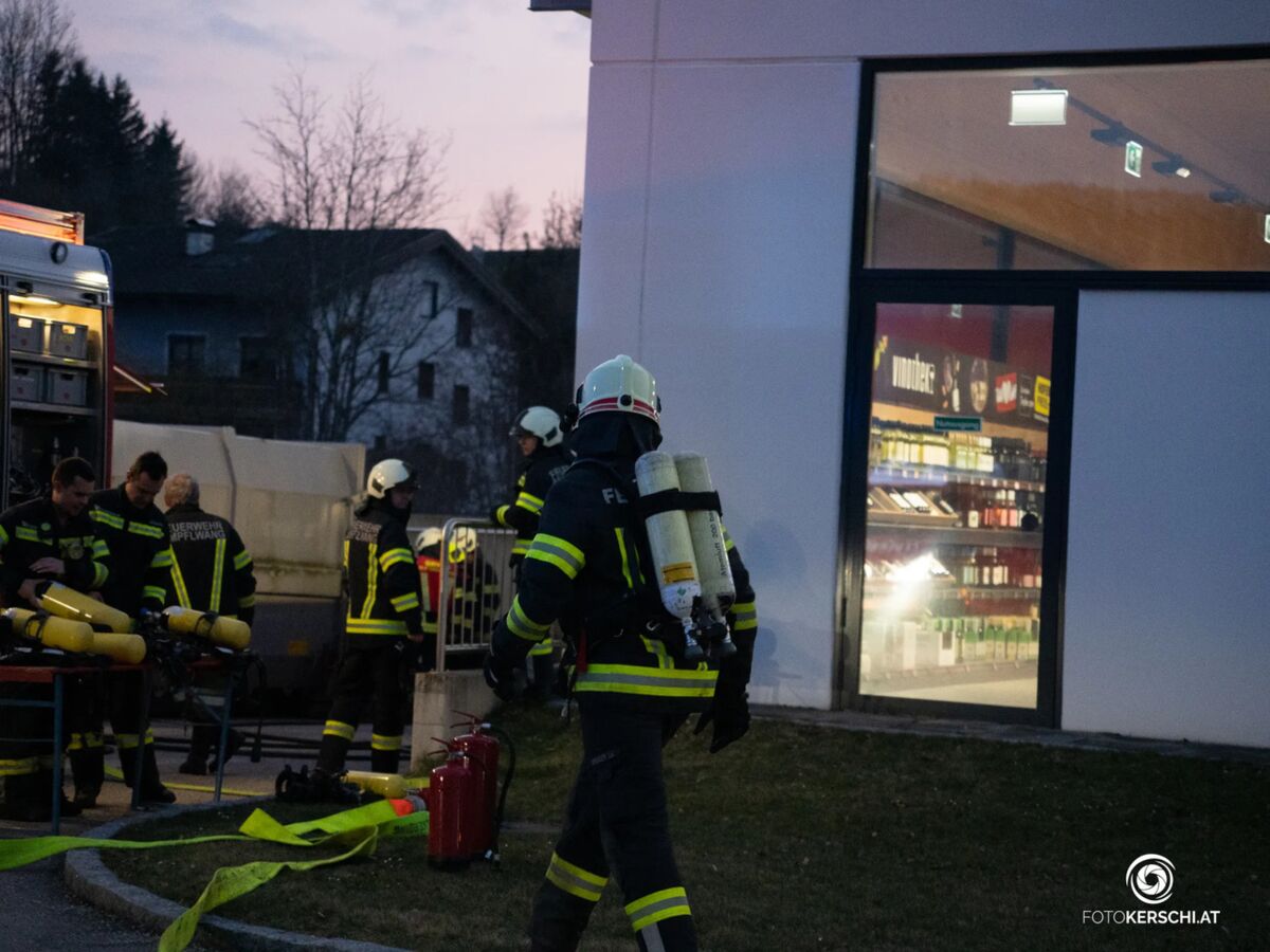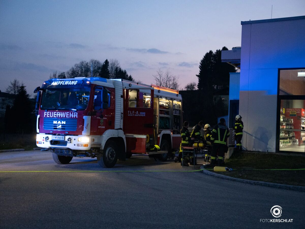 Containerbrand bei Lebensmittelhändler in Ampflwang