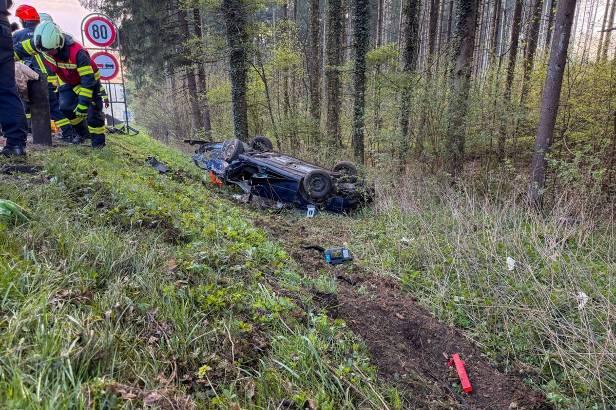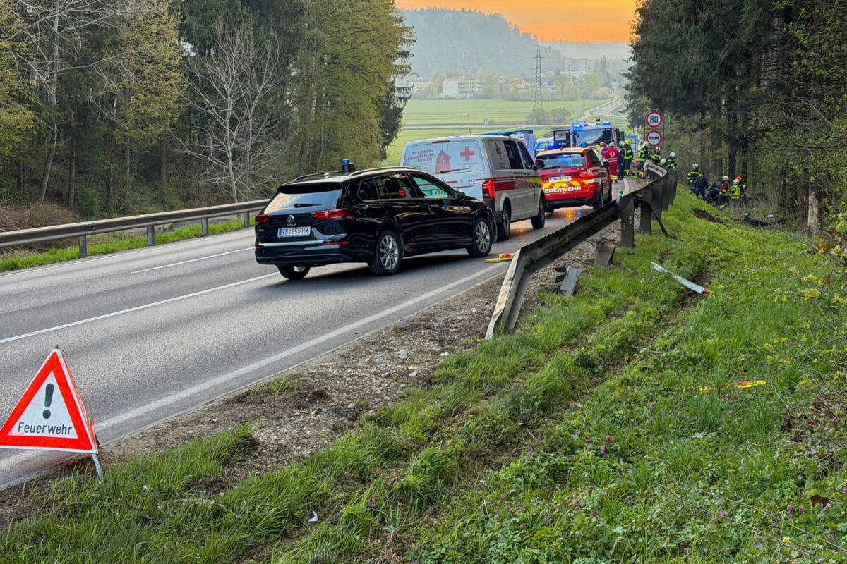 Ein 26-Jähriger aus dem Bezirk Vöcklabruck war mit seinem Auto Samstagfrüh auf der B1 Richtung Vöcklabruck unterwegs. Dabei geriet er im Gemeindegebiet von Timelkam aus bislang unbekannter Ursache rechts von der Fahrbahn, fuhr auf eine Leitschiene auf, woraufhin sich der Wagen in einem dortigen Waldstück mehrmals überschlug.