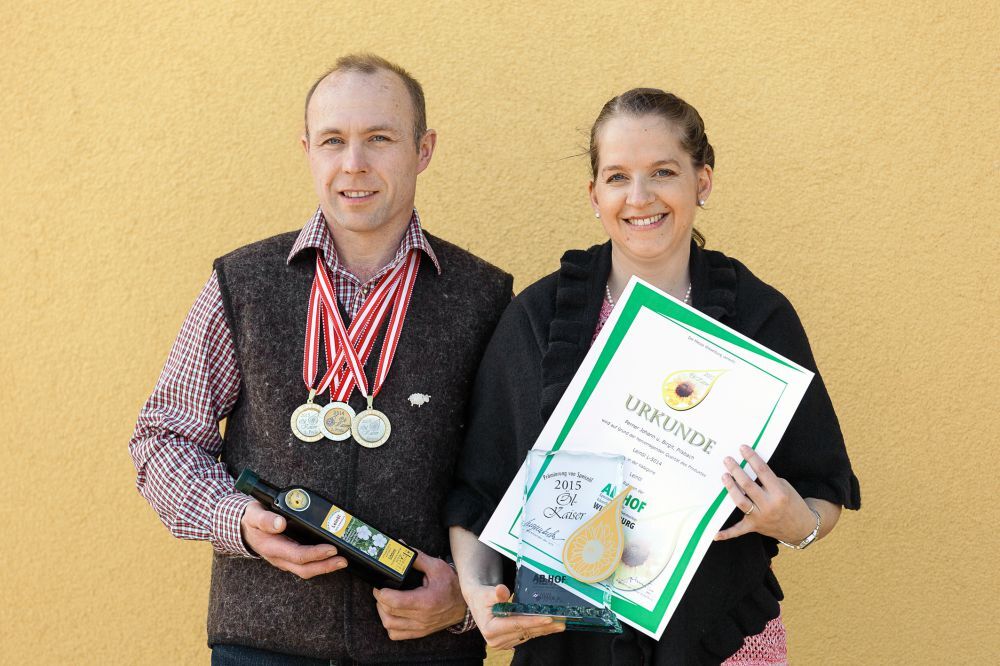 Speiseöl aus bäuerlicher Produktion wurde mit dem „Öl-Kaiser“ ausgezeichnet. Mit ihrem Leinöl wurden Johann und Birgit Perner aus Pilsbach zum Kaiser gekrönt. Zusätzlich erhielten sie je Gold für ihr Sojaöl und Leinöl.