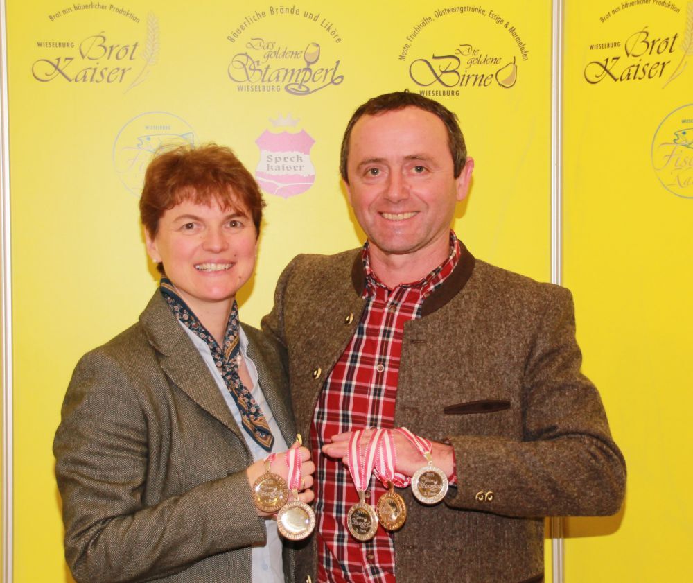 Weitere Medaillengewinner sind Johann und Maria Maringer aus Ampflwang mit Bronze für den Zwetschkenbrand und Franz Huber aus Fornach mit seiner Waldhimbeere (Bronze Kategorie „Himbeerbrand“).