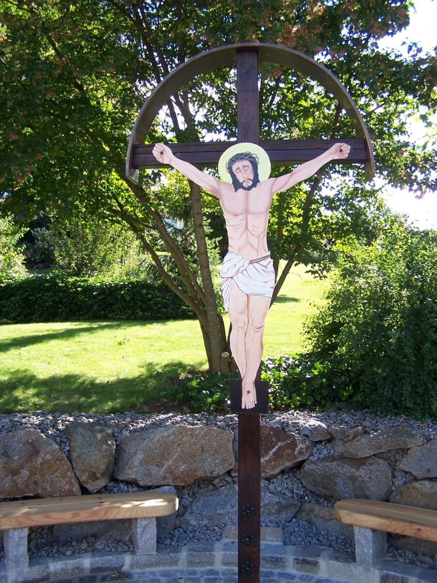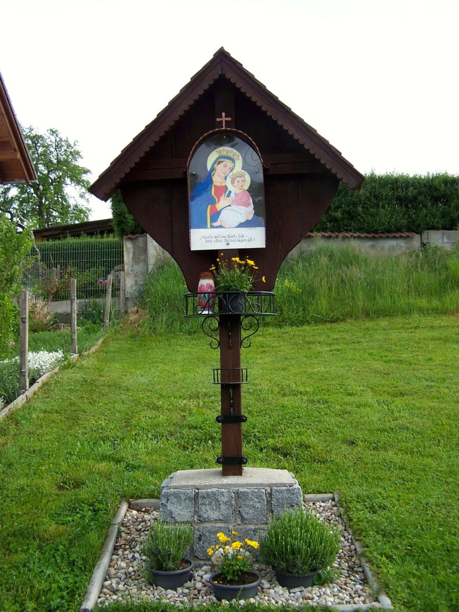 Franz und Eva Obermaier ließen das „Kiener-Kreuz“ bei der Einbindung der Straße nach Oberschnötzing erneuern und den Vorplatz umgestalten, sodass er eventuell als Segenstatt bei Fronleichnamsprozessionen verwendet werden kann.