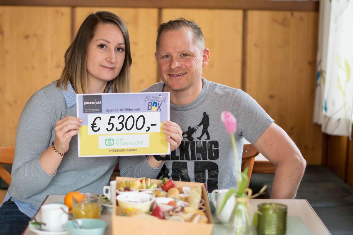 FRANKENBURG. Ganze 5.300 Euro haben Eva und Mario vom Preuner Wirt für den guten Zweck gesammelt. Gemeinsam mit ihrem Team hatten sie 130 hausgemachte Charity Brunch-Boxen zusammengestellt und am 13. März gegen Vorbestellung in Frankenburg und Vöcklabruck zur Abholung bereitgestellt.