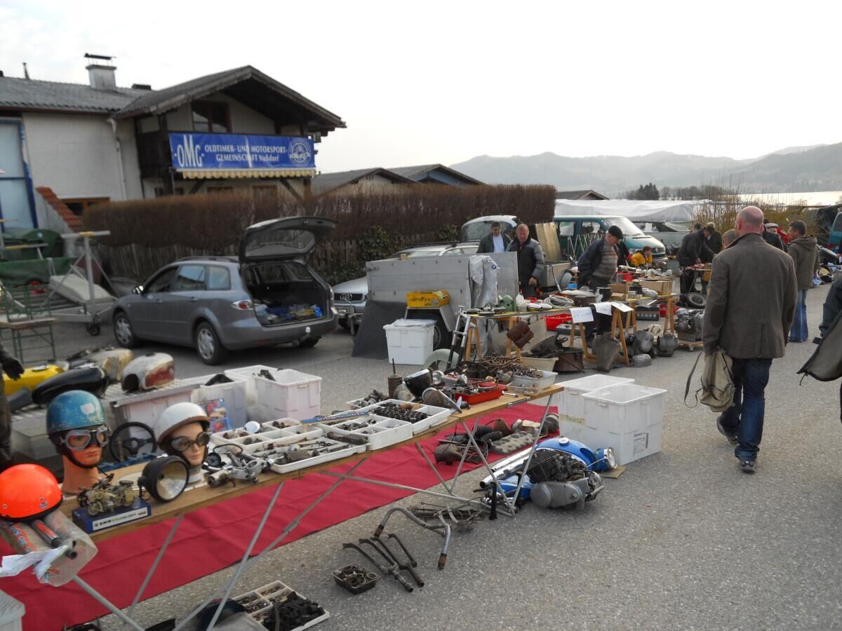 Die Oldtimer-Motorsportgemeinschaft Nußdorf veranstaltet bereits zum 22. Mal den Oldtimer- und Teilemarkt für Autos und Motorräder. Ab den frühen Morgenstunden wird gehandelt, gefeilscht, gesucht, getauscht und gekauft. Oldtimer-Fans machen so manches Schnäppchen, um den „historischen Liebling“ nach der Winterpause wieder flott zu bekommen oder erstehen gar ein fix und fertig restauriertes Motorrad. Die Standgebühr für Anbieter beträgt 11 Euro. Weitere Informationen gibt es unter Tel. 0664/ 7962540.