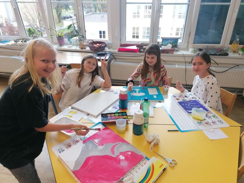 Im Anschluss der Unterrichtsstunden, in denen die Themen durchgenommen worden waren, wurde im Maximilianhaus in Puchheim eine Vernissage gestaltet, an der Eltern, Verwandte und Freunde teilnahmen.