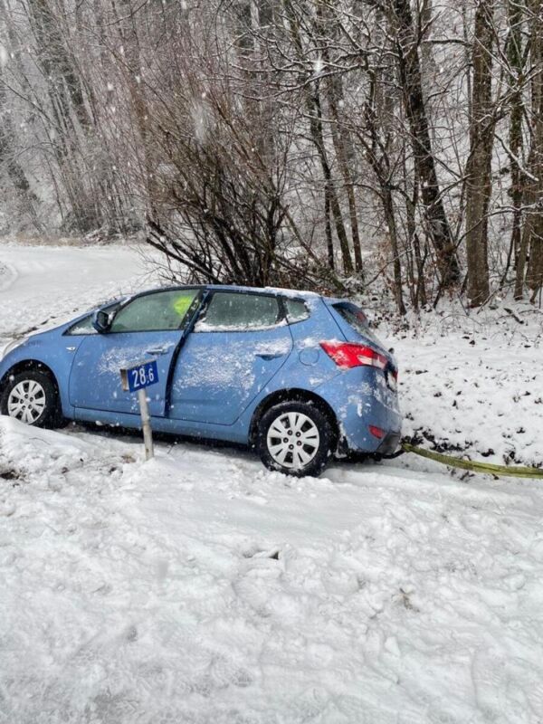 Die zwei Feuerwehren waren mit 31 Mann und vier Einsatzfahrzeugen rund viereinhalb Stunden an dieser Einsatzstelle im Schneetreiben im Einsatz.