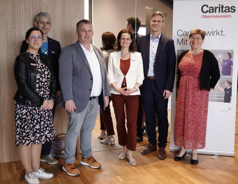 Bei der Eröffnungs- und Segnungsfeier konnte Maria Musel, Mitglied des Vorstands der Caritas OÖ, neben zahlreichen Gästen auch St. Georgens Bürgermeister Ferdinand Aigner und Vöcklabrucks Bezirkshauptmann Johannes Beer begrüßen. Pfarrer Hans Greinegger segnete das Büro und die Menschen, die in den Räumlichkeiten arbeiten.