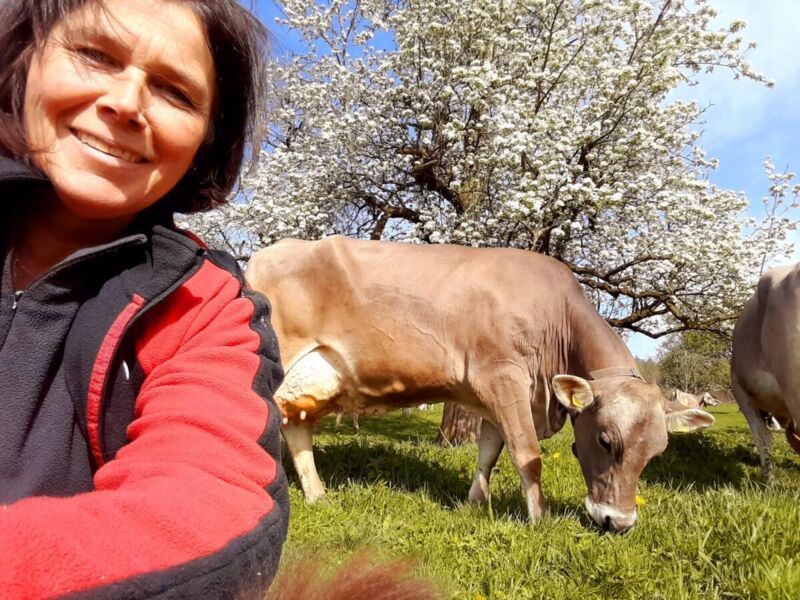 Weidende Kühe, frische Milch und für jeden eine offene Stalltür, das ist der Leitsatz von Gabriele Wieneroither, die mit ihrem Mann Karl, 65 Milchkühe mit eigener Nachzucht, auf dem Bio–Milchhof „Moar am Kirchberg“ in Alt-Attnang führt. „Das Wohl der Tiere ist uns besonders wichtig. Unsere Rinder genießen die frische Weide, Silage, Heu und einen liebevollen Umgang“, so die Stellvertreterin der Bezirksbäuerin. Um die Bio-Richtlinien einhalten zu können, schicken sie ihre Kalbinnen über die Sommermonate nach Ternberg auf die Alm. Ein Melkroboter ermöglicht freien Zugang auf die Wiese, Tag und Nacht. Das schätzen nicht nur ihre täglichen Milch- und Käsekundschaften, sondern auch die Spaziergänger, die entlang der Birkenallee unterwegs sind.