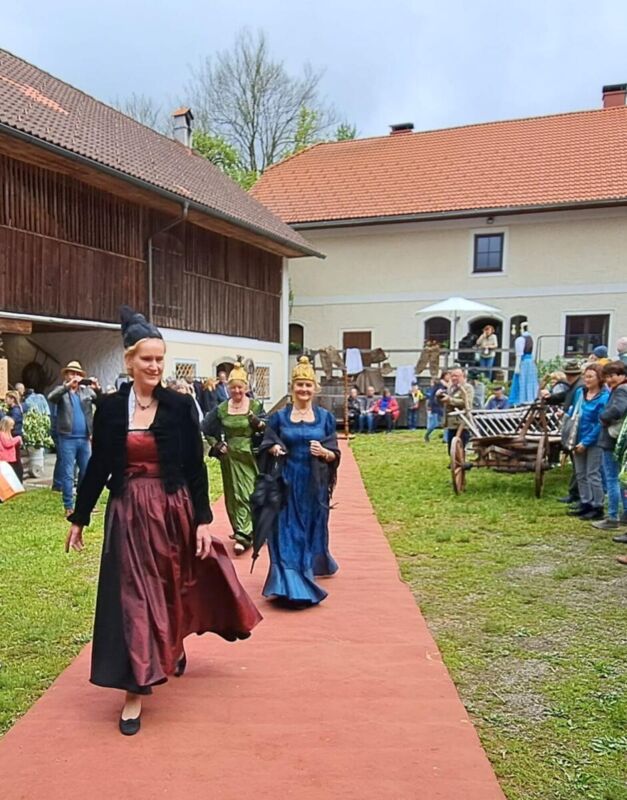Das Motto des 14. Marktes war „Tracht behält ihren Wert über Jahrzehnte.“ Gerade ein ererbtes oder bereits getragenes Stück hat seinen besonderen Reiz Die Idee, schöne Trachten und Festtagskleider zu neuem Leben zu erwecken, wird von vielen Menschen mitgetragen. Damit werden Ressourcen geschont und ein Beitrag zur Umweltentlastung geleistet. Heuer wurde besonderes Augenmerk auf das Goldhaubenfestkleid gelegt. Bei der Modenschau (von Maria Steiner organisiert) wurden unter anderem auch drei Festkleider samt Goldhaube und Perlhaube vorgeführt.