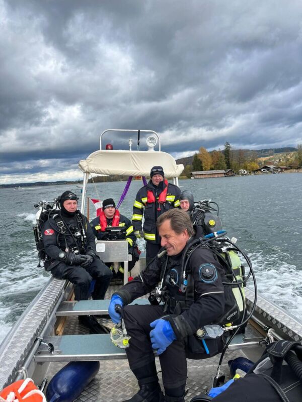 Am Vormittag stand in der Zeugstätte der Freiwilligen Feuerwehr Zell am Moos eine kurze Theorieeinheit auf dem Programm, bei welcher von Landesfachreferent für Tauchen Peter Buchegger die Vorgehensweisen bei Unterwassersuchaktionen aufgefrischt wurden.Im Anschluss folgte ein interessanter Kurzvortrag des Landesverbandsarztes Dr. Christian Wölfler über Tauchunfälle und die erforderlichen Erste-Hilfe Maßnahmen. Bevor es ins Wasser ging übten die Einsatzkräfte den Notfall-Check, die Reanimation und die Beatmung mit dem AMBU-Beutel unter der Aufsicht des Landesverbandsarztes und des Landessanitätsbeauftragten Peter Greschner.Anschließend erhielten die Taucher:innen ihre Aufträge, welche diese in kleinen Gruppen gemeinsam durchführten. Die Suchgebiete wurden im Vorfeld der Übung mit Sonargeräten abgesucht und dabei zahlreiche versunkene Gegenstände identifiziert. Die Tauchgruppen konnten zahlreiche Objekte suchen und mit Bojen markieren.Nach einer gemeinsamen Mittagspause stand am Nachmittag die Bergung der Suchobjekte am Programm. Es konnten mehrere versunkene Boote und weitere Gegenstände mit Unterwasser-Hebeballonen gehoben und aus dem Wasser geborgen werden.Unterstützt wurden die Einsatztaucher von den Bootsbesatzungen der Freiwilligen Feuerwehren Zell am Moos und Mondsee und den Booten der österreichischen Wasserrettung von den Ortsstellen Bischofshofen, Grabensee und Salzburg-Stadt.