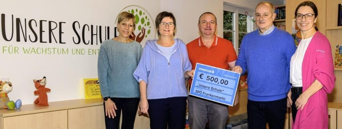 FRANKENMARKT. Die SPÖ Frankenmarkt übergab der Schulinitiative „Unsere Schule“ in der Frankenmarkter Bahnhofstraße kürzlich einen Scheck in Höhe von 500 Euro zur Ausstattung eines Werkraumes.