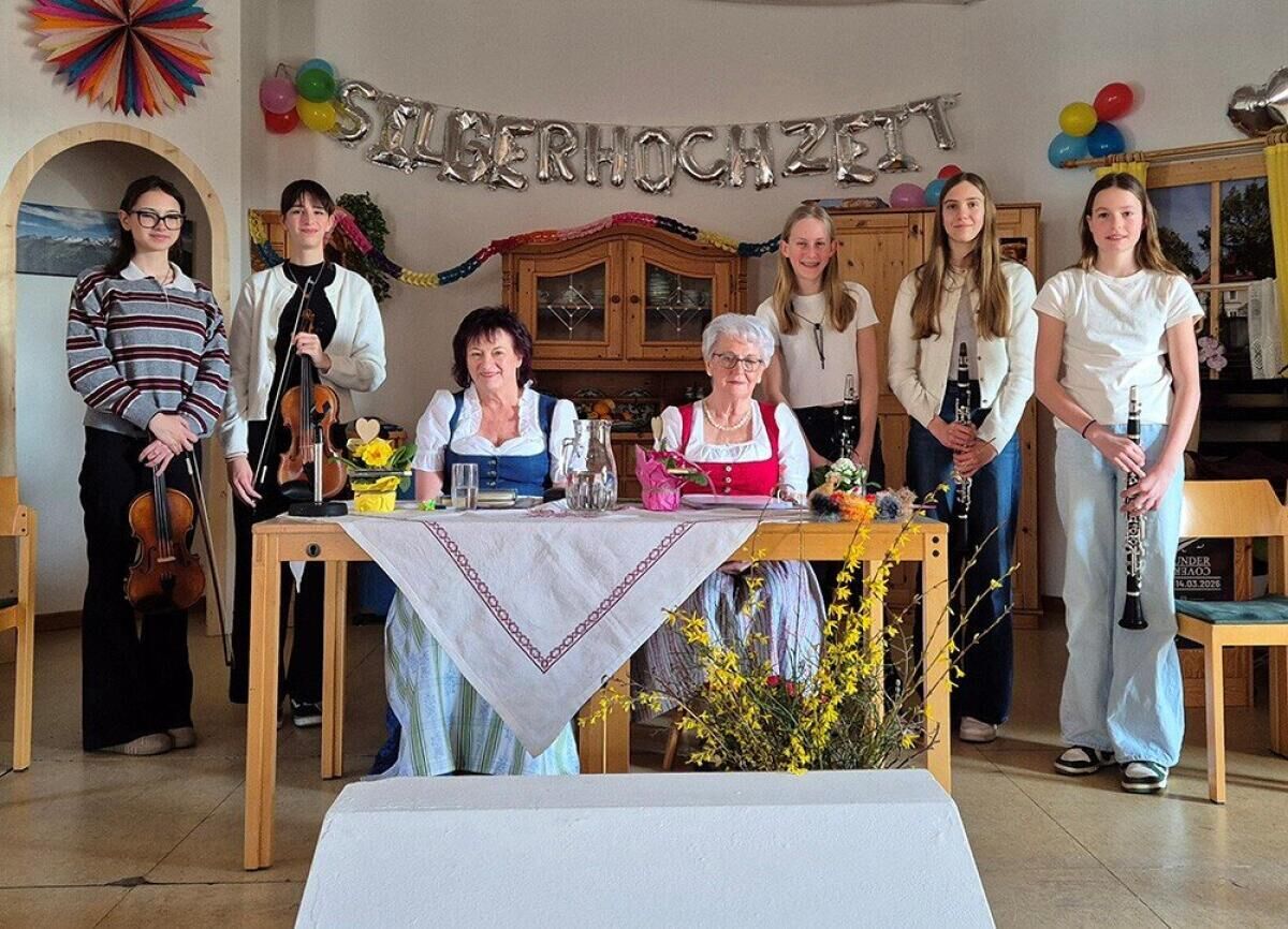 Die beiden Mundartdichterinnen Margarete Eder und Christine Schilcher präsentierten ihrem interessierten Publikum zahlreiche geistreiche Gedichte. Viele davon sorgten für Lachen und führten humorvolle „Blüten des Lebens“ vor Augen. Dabei ging es unter anderem um das Verhältnis von Mann und Frau – etwa beim Autofahren, Grillen oder beim Hochzeitstag –, um WhatsApp-Gruppen, um künstliche Intelligenz oder um „Liebesgeschichten und Heiratssachen“.