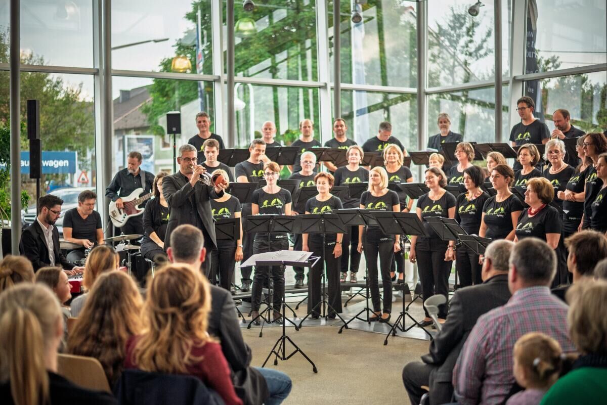 Als Aufführungsort dient das moderne Ambiente des Autohauses Attergau.