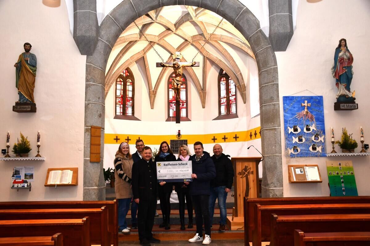 MÖNCHDORF. Der Verschönerungsverein Mönchdorf überreichte der Pfarre eine Spende von 5000 Euro für die Erneuerung des Kirchendaches.