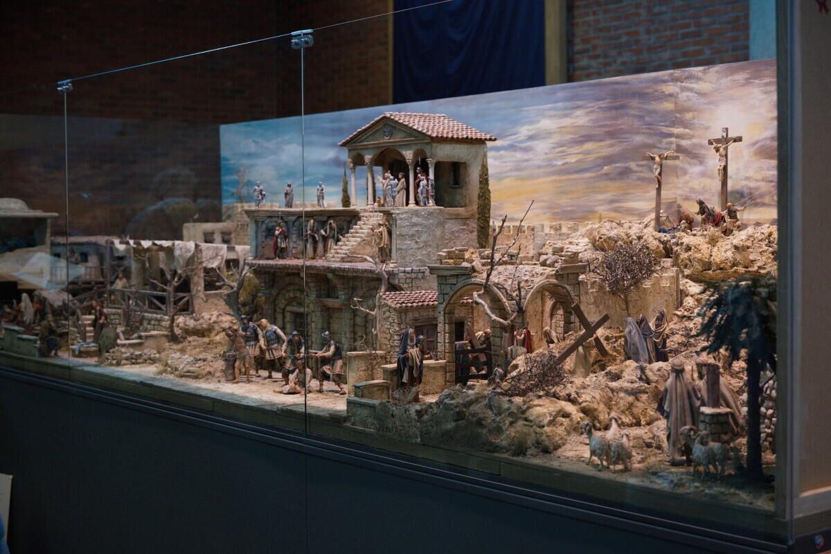 Die Osterkrippe misst rund 4,50 Meter in der Länge und 1,5 Meter in der Höhe. Für die Umsetzung wurden etwa 1.500 Arbeitsstunden aufgewendet. Insgesamt 42 Krippenbauer sowie zehn weitere Helfer für Organisation, Transport und Gestaltung waren an der Umsetzung beteiligt.