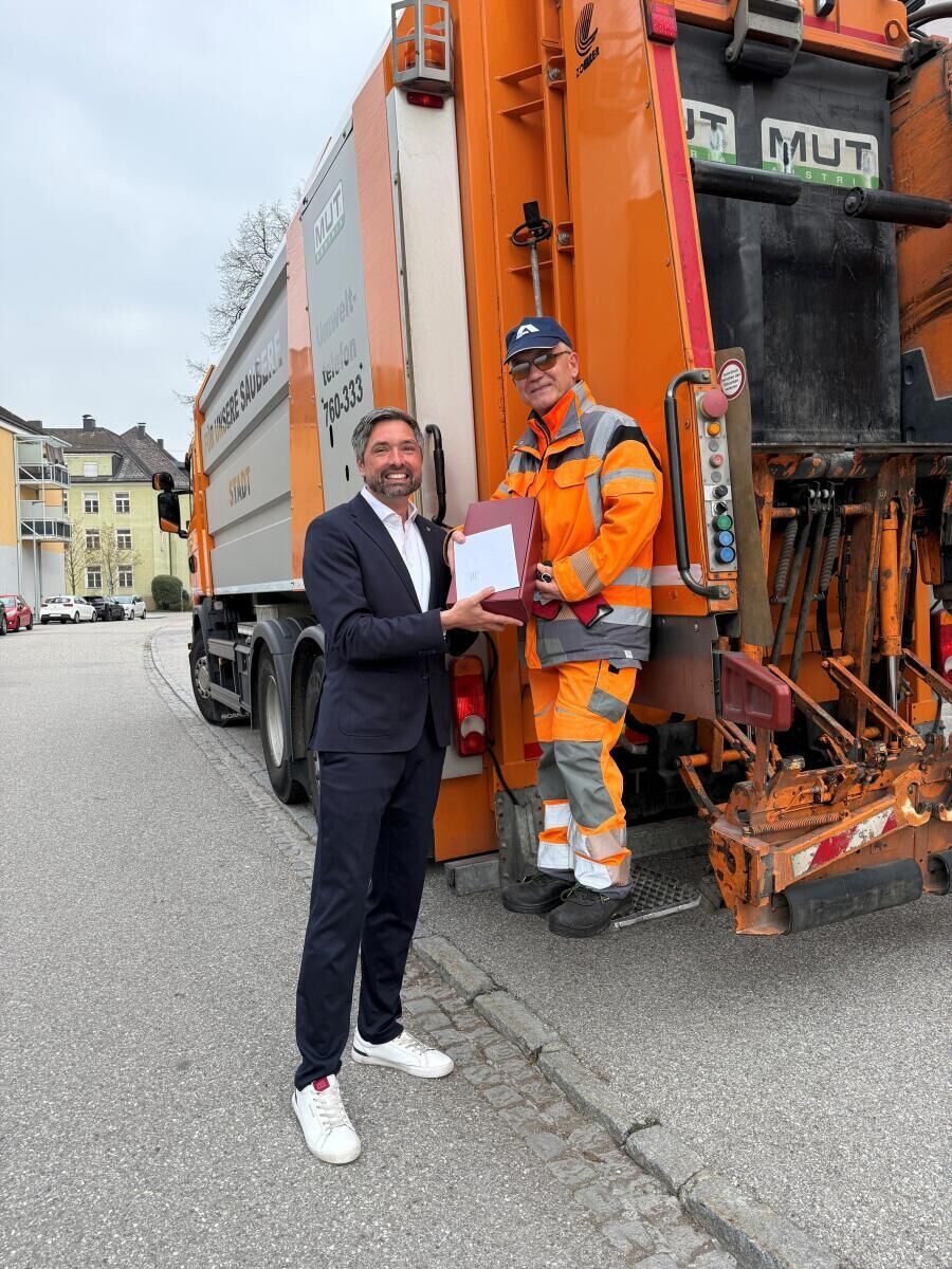 VÖCKLABRUCK. Ein Mitarbeiter der Müllabfuhr der Stadtgemeinde Vöcklabruck hat nach dreieinhalb Jahren Tätigkeit seinen 65. Geburtstag gefeiert. Bürgermeister Peter Schobesberger gratulierte ihm dabei persönlich.