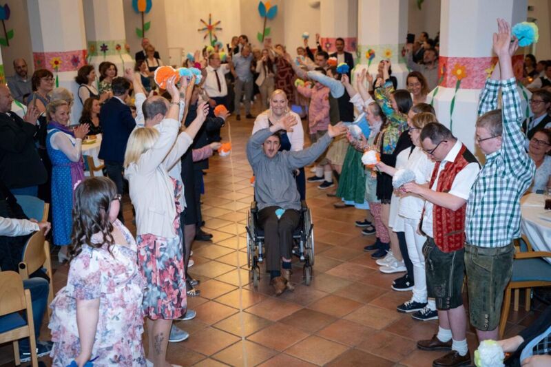 Die Ballgäste erwartete ein buntes Rahmenprogramm. Beschäftigte und Bewohner eröffneten mit einem Einzug gemeinsam mit dem Team der Lebenshilfe und der Arbeitsgruppe und überraschten mit weiteren Einlagen. Die Stimmung war ausgezeichnet, alle freuten sich endlich wieder ausgelassen feiern zu können und waren sich einige, dass es bis zum nächsten Ball keine so lange Pause mehr geben darf.