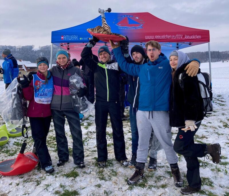 SEEWALCHEN. Rund 40 Sportler von sechs bis 78 Jahren fanden sich in Haining beim ersten Arbeiter Turn- und Sportverein (ATSV) Seewalchen Zipfelbobrennen ein.