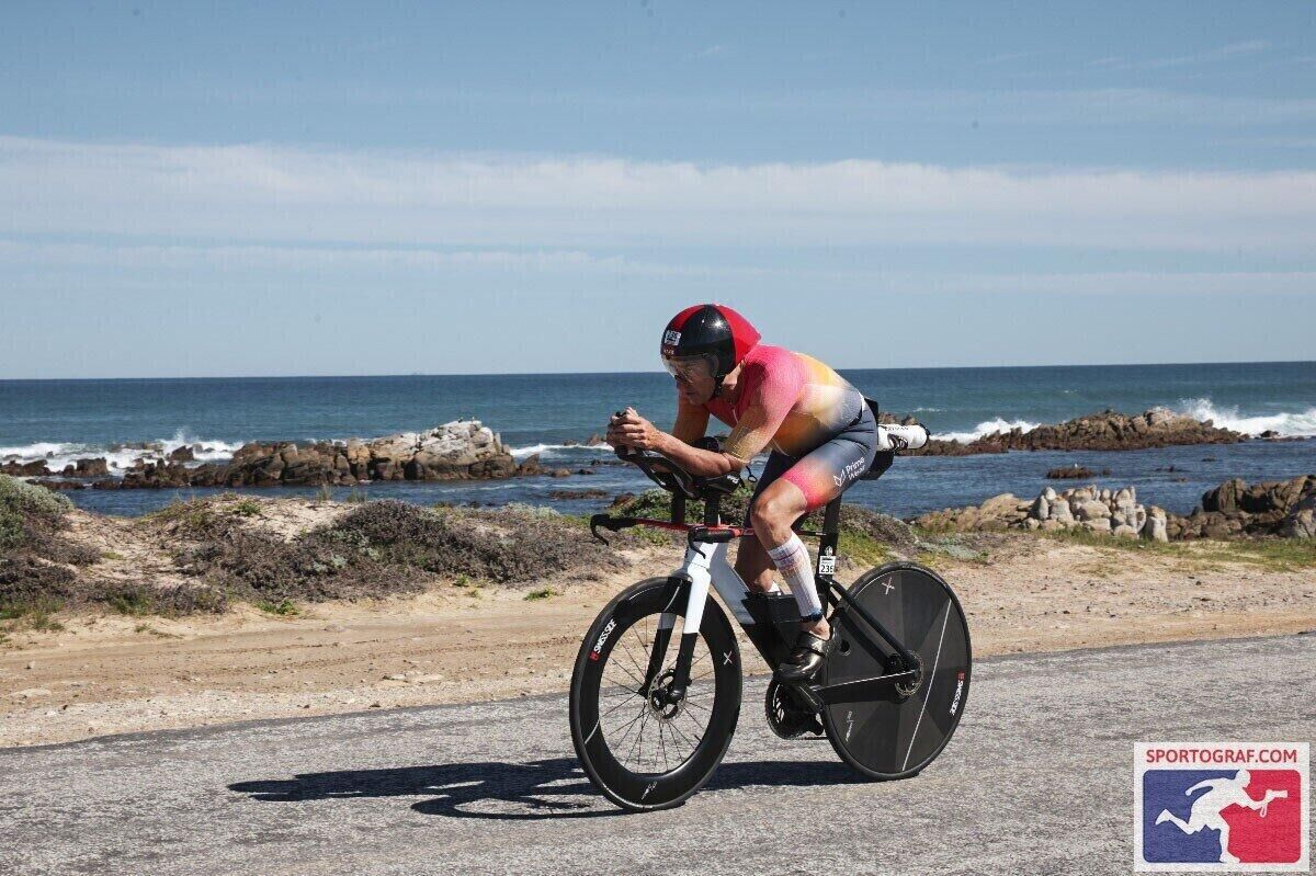 Auf der Radstrecke entwickelte sich anschließend ein kontrolliertes Rennen. Nach rund 100 Kilometern übernahm er die Führung in seiner Altersklasse und baute diesen Vorsprung mit einer konstant starken Leistung weiter aus. Nach 4:55:01 Stunden auf dem Rad ging er als Spitzenreiter auf die Laufstrecke.