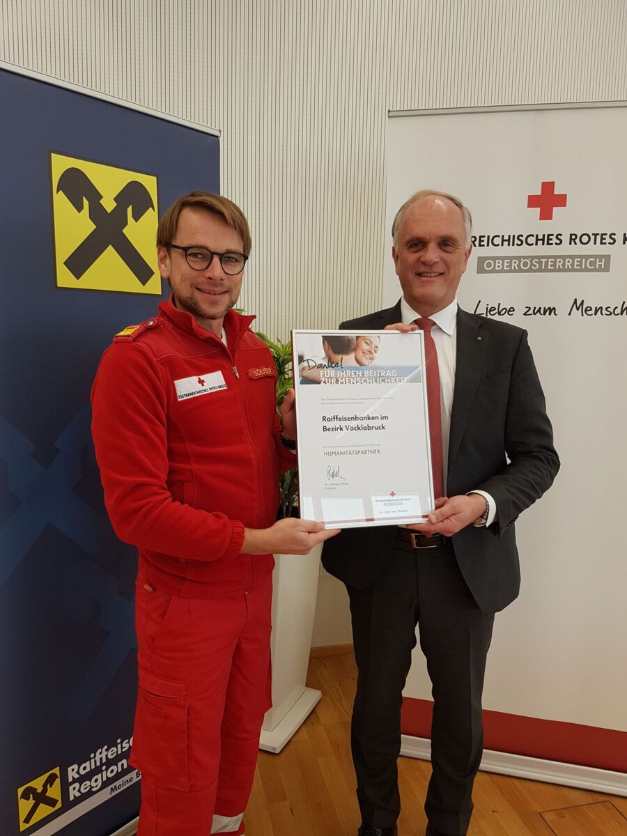 BEZIRK VÖCKLABRUCK. Sie unterstützen die Werte und das Engagement der landesweit größten humanitären Hilfsorganisation. Mit den Raiffeisenbanken im Bezirk Vöcklabruck gewann das OÖ. Rote Kreuz seinen mittlerweile 100. Unternehmenskooperations-Partner.