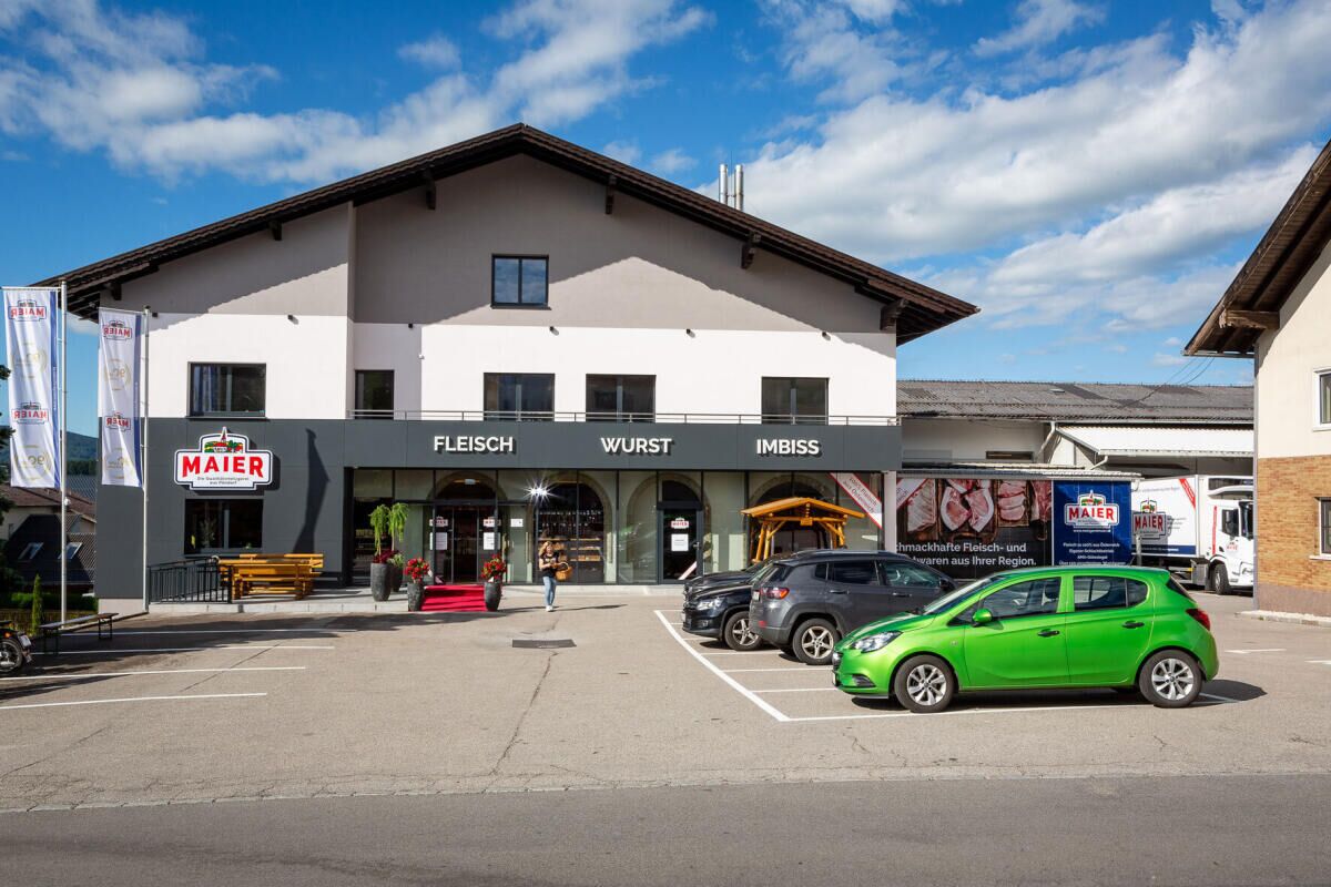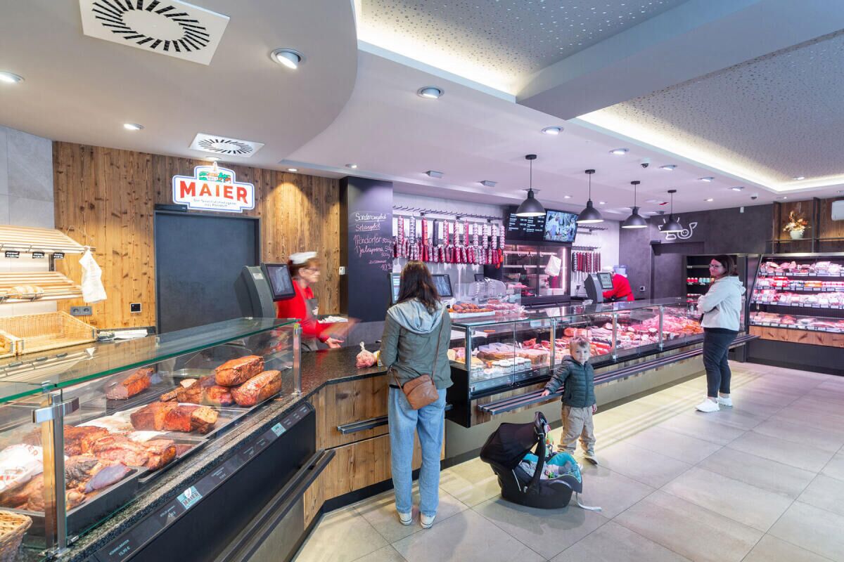 Im modernen Geschäftslokal finden Kunden breite Auswahl an frischen Wurst- und Fleischwaren. Ein Selbstbedienungs-Bereich ermöglicht das Einkaufen auch außerhalb der Öffnungszeiten. Praktisch für spontanes Einkaufen am Wochenende oder zu den Feiertagen. Der SB-Bereich bietet zu den Metzgerei-Waren viele regionale Produkte (Nudeln, Eier, Milchprodukte, Käse, Gewürze u.v.m.) Zusätzlich erhalten Kunden die Maier Metzgereiprodukte beispielsweise bei Maximarkt, Billa, Spar Märkte regional, Penny, MPreis und C+C Wedl.