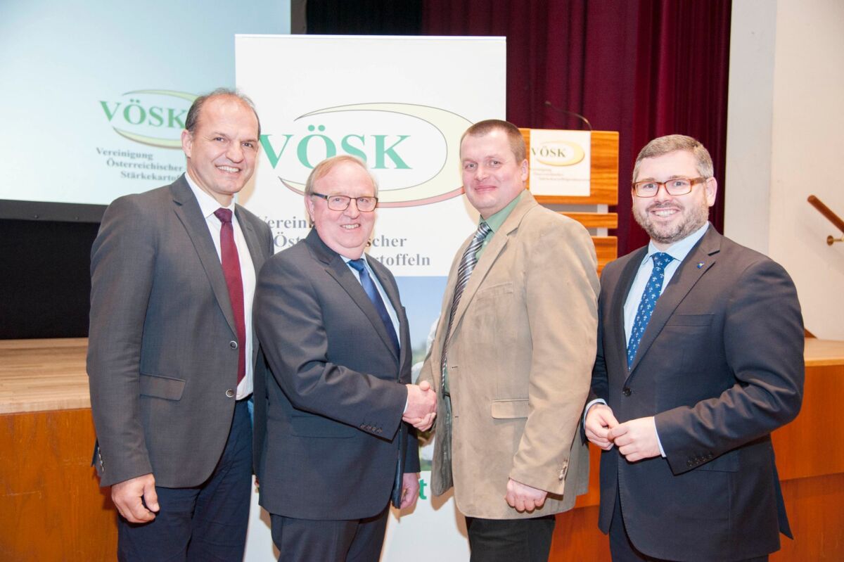 „Es waren 18 Jahre, die geprägt waren von guter Zusammenarbeit. Egal ob das Land Niederösterreich, die Landwirtschaftskammer, die Agrana oder das Ministerium – es war stets ein gutes Miteinander. Natürlich gab es auch unsichere Jahre. Vor allem nach dem Auslaufen der Stärkekartoffelmarktordnung. Aber gemeinsam konnten wir die Zukunft des Stärkekartoffelbereichs gestalten“, lässt Alfred Sturm seine Zeit als Obmann der Vereinigung Österreichischer Stärkekartoffelproduzenten (VÖSK) Revue passieren. Partnerschaften, die auch unter dem neuen Obmann gepflegt werden sollen. „Es ist mir wichtig, dass wir auch weiter an einem Strang ziehen. Der Stärkebereich konnte sich in den letzten Jahren sehr gut entwickeln. Diesen Weg möchte ich weitergehen“, so Gerhard Bayer, der künftig als Obmann die Geschicke der VÖSK leiten wird.