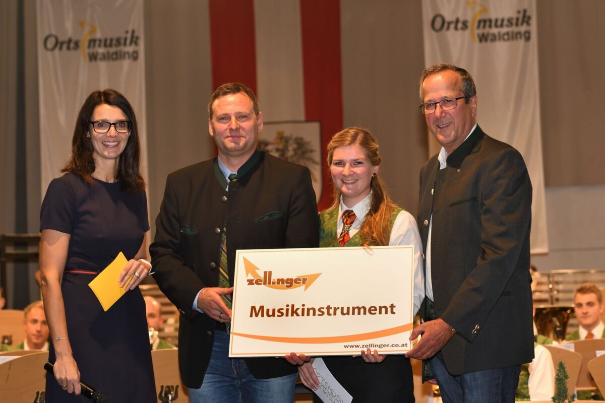 Der Schlüssel zum Erfolg sind neben einer fleißigen Probenarbeit jedoch die Instrumente der Musiker, ohne welche solche Leistungen nicht möglich wären. Aus diesem Grund wurde zum Abschluss des Konzertes eine Instrumentenspende durch die Firma Zellinger übergeben. Diese Spende ist nicht nur ein Zeichen der Wertschätzung und Anerkennung, sondern vor allem ein Zeichen für den starken Zusammenhalt der Vereine und Unternehmen im Ort.