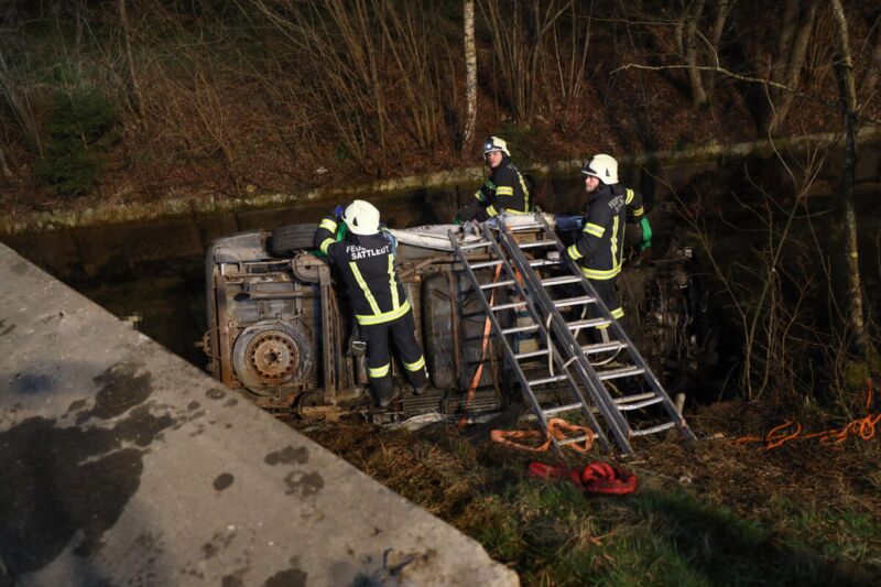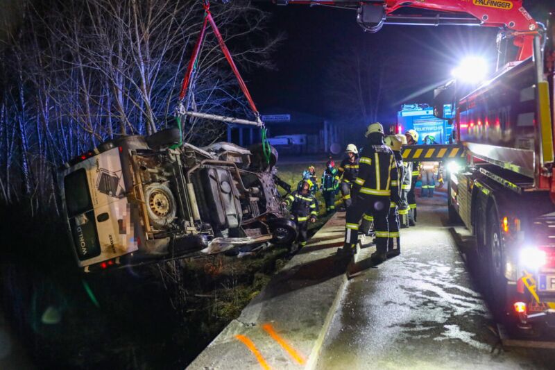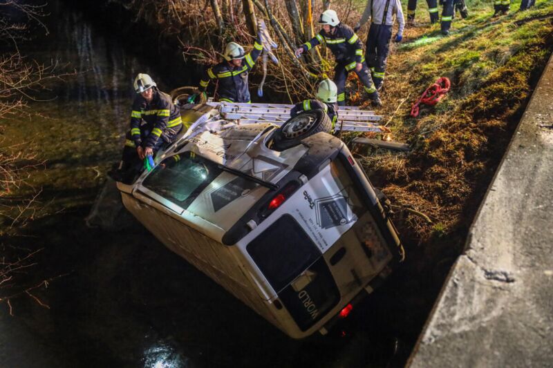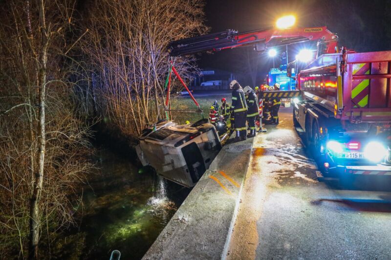 STEINERKIRCHEN AN DER TRAUN. Samstagabend ist in Steinerkirchen an der Traun ein Kleintransporter in den Mühlbach gestürzt. Der Lenker musste von der Feuerwehr aus dem Unfallfahrzeug geholt werden.