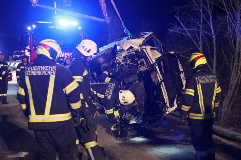 Fünf Feuerwehren wurden zu dem Unfall alarmiert, sie schafften es den Mann aus dem Unfallfahrzeug zu retten. Nach der Erstversorgung wurde er mit Verletzungen unbestimmten Grades vom Notarzthubschrauber „Martin 3“ ins Klinikum Wels eingeliefert.