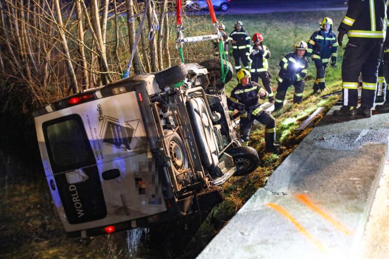 Der Mann (51) war gegen 18.15 Uhr mit von Steinerkirchen an der Traun kommend Richtung Bad Wimsbach unterwegs. Dabei verlor er auf der Straße Almegg in Steinerkirchen aus unbekannter Ursache die Kontrolle über sein Fahrzeug, kam rechts von der Fahrbahn ab und rammte mehrere Leitpflöcke. Zudem durchbrach er ein Brückengeländer auf der linken Seite der Fahrbahn und stürzte in den Mühlbach, wo der Kleintransporter auf der Seite liegen blieb.