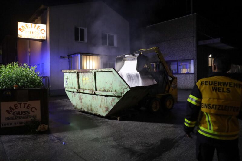 Ein Container mit Metallabfällen brannte am Firmengelände eines Gewerbebetriebes im Welser Industriegebiet. Die Einsatzkräfte dämmten den Brand vorerst ein und sorgten dafür, dass der Container aus dem Gefahrenbereich gebracht wurde. Weitere Löschmaßnahmen erfolgten mittels Auftragen von Sand auf den betroffenen Metallabfall. Verletzt wurde bei dem Brand niemand. Die Boschstraße war im Bereich des Einsatzortes nur erschwert passierbar.