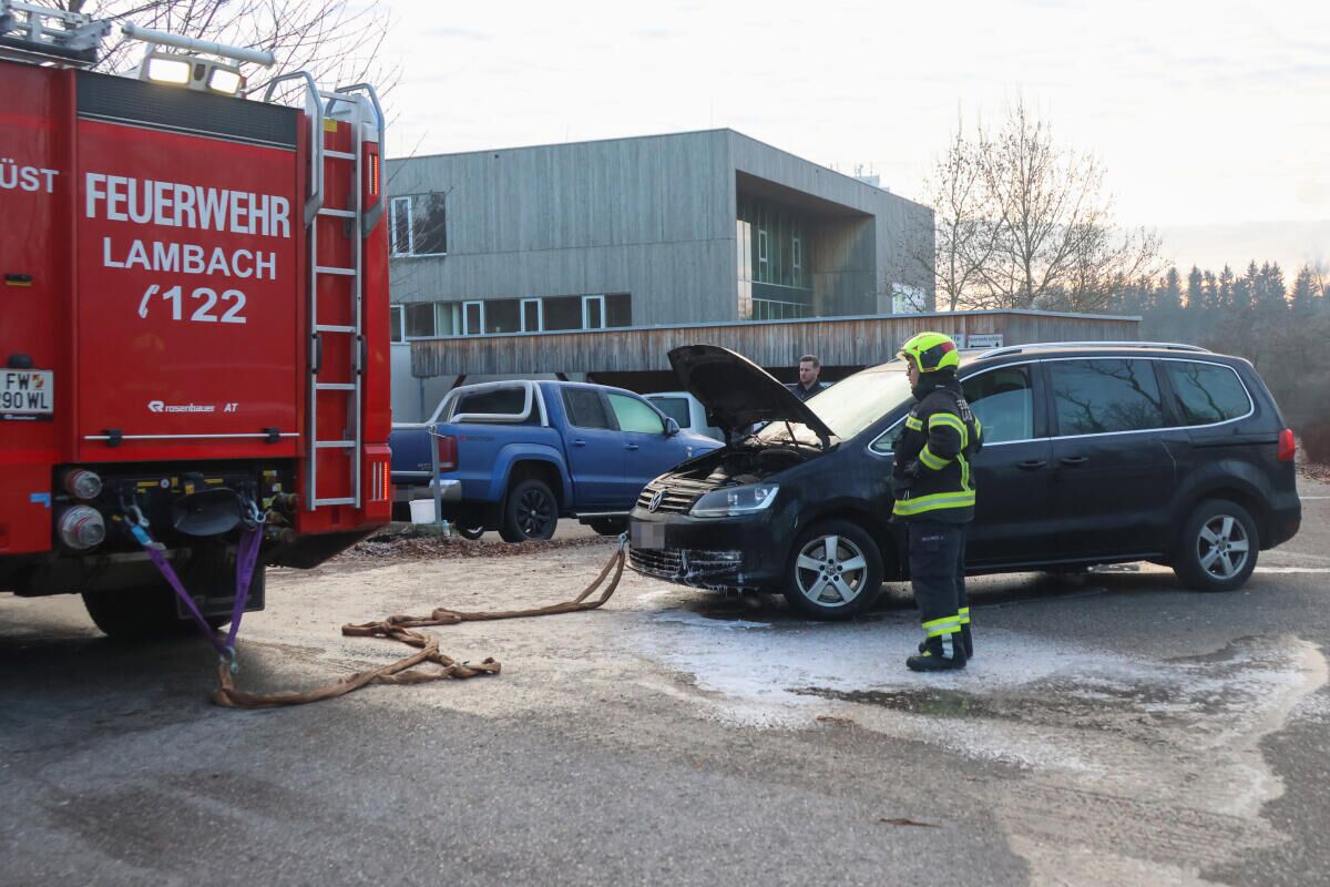 Auto begann vor einer Schule in Lambach zu brennen