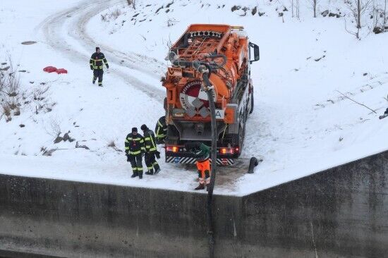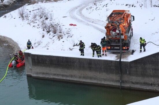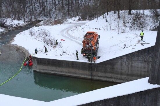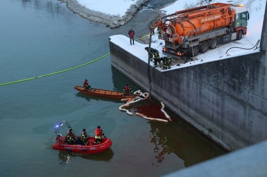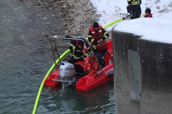 Stundenlanger Feuerwehreinsatz wegen Öl in der Traun