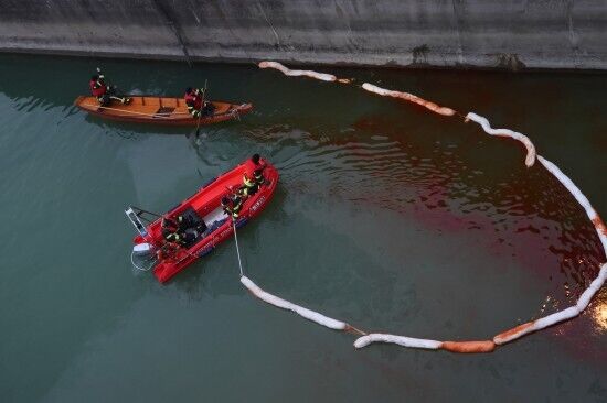 Erste Maßnahmen der Feuerwehr beinhalteten das Errichten einer Ölsperre. Nach umfangreicher Beratung wurde beschlossen, einen Saugwagen hinzuzufügen und mithilfe einer schwimmenden Ölsperre den Ölfilm aus dem Wasser zu entfernen, um ihn am Ufer abzusaugen. Der Einsatz dauerte bis in die Abendstunden. Die Ermittlungen zur Ursache sind noch im Gange.