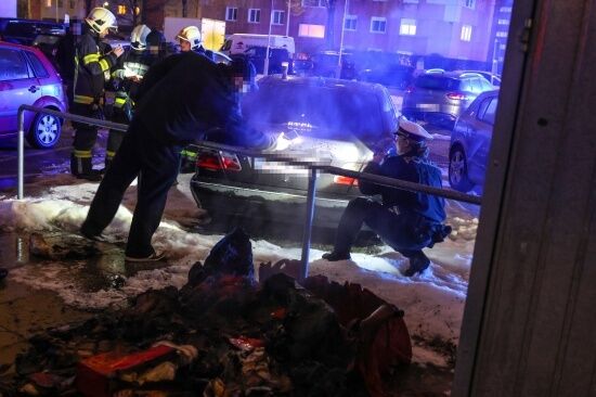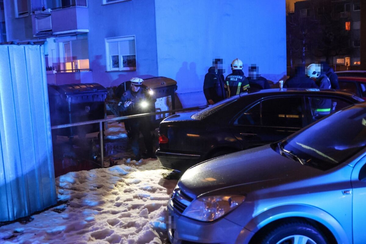 Geparktes Fahrzeug durch brennenden Papiercontainer in Wels beschädigt