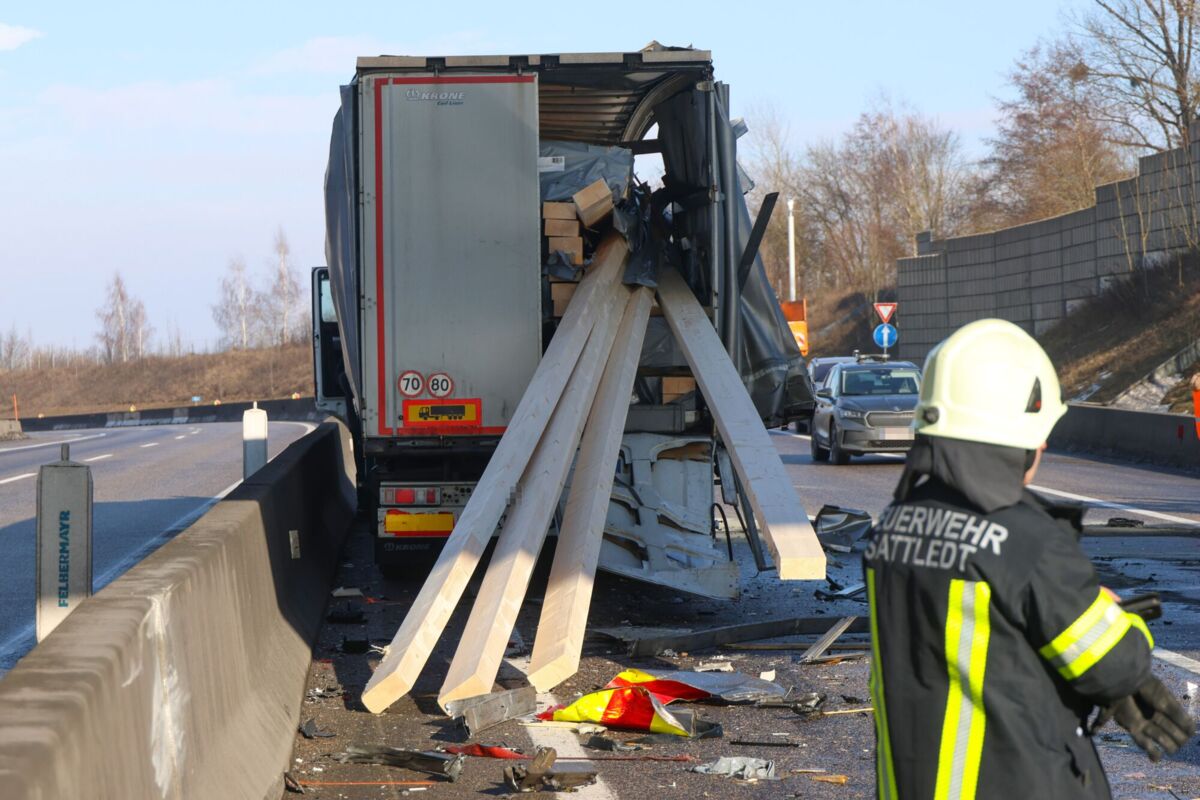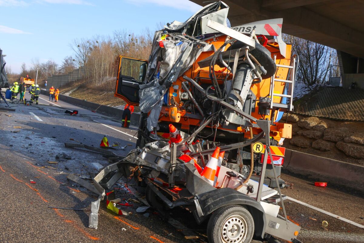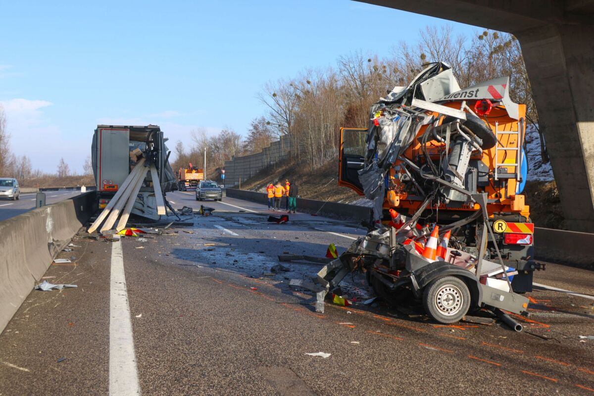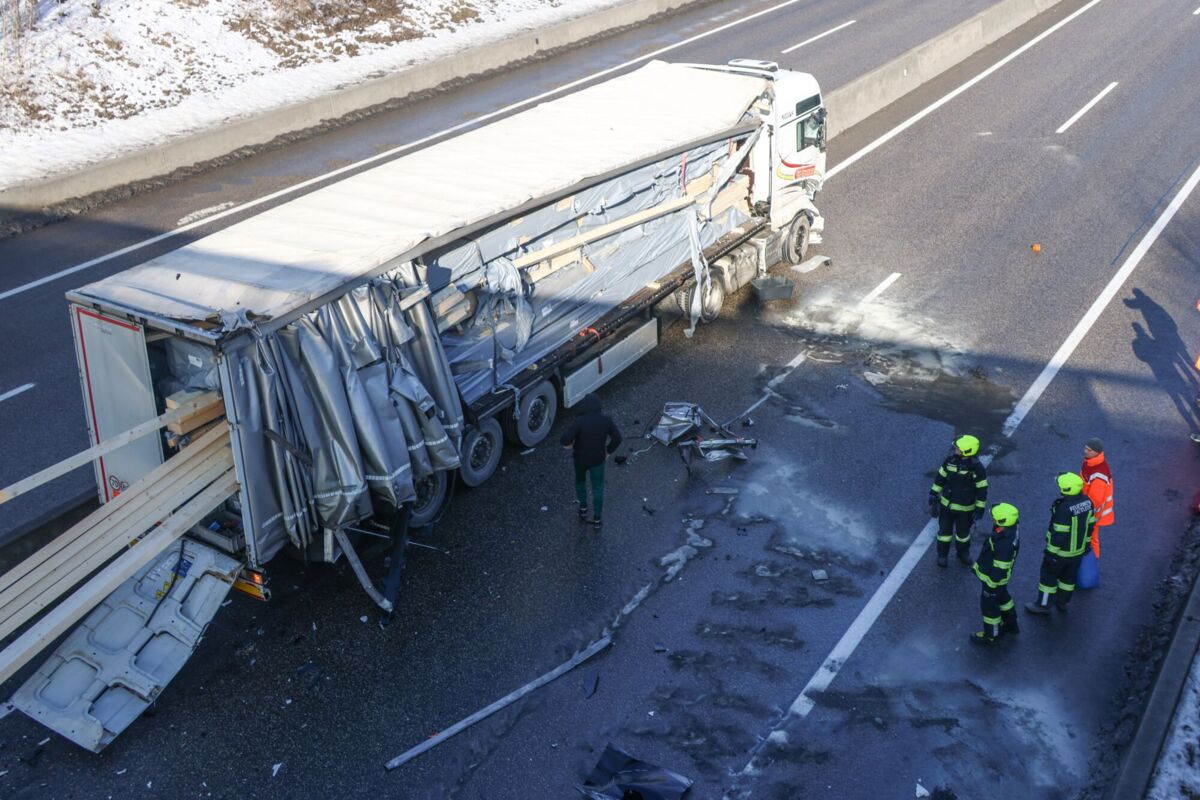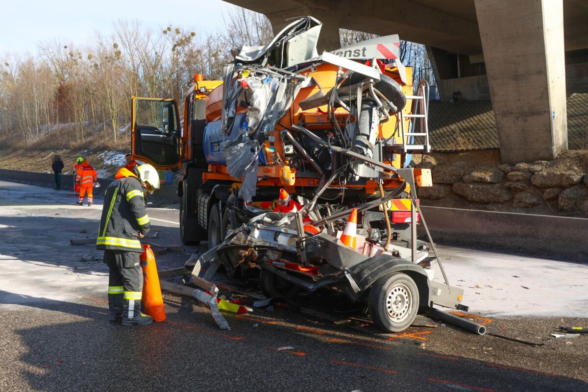 Ein schwerer Verkehrsunfall ereignete sich am Montag auf der A8 Innkreisautobahn bei Steinhaus im Bezirk Wels-Land. Ein Lastkraftwagen krachte in ein Absicherungsfahrzeug der ASFINAG, das einen Warnleitanhänger aufstellen wollte. Beide Fahrzeuge wurden stark beschädigt, und die Ladung des Lkw verteilte sich teilweise auf der Fahrbahn.