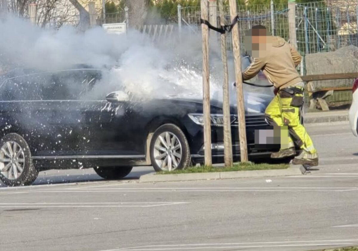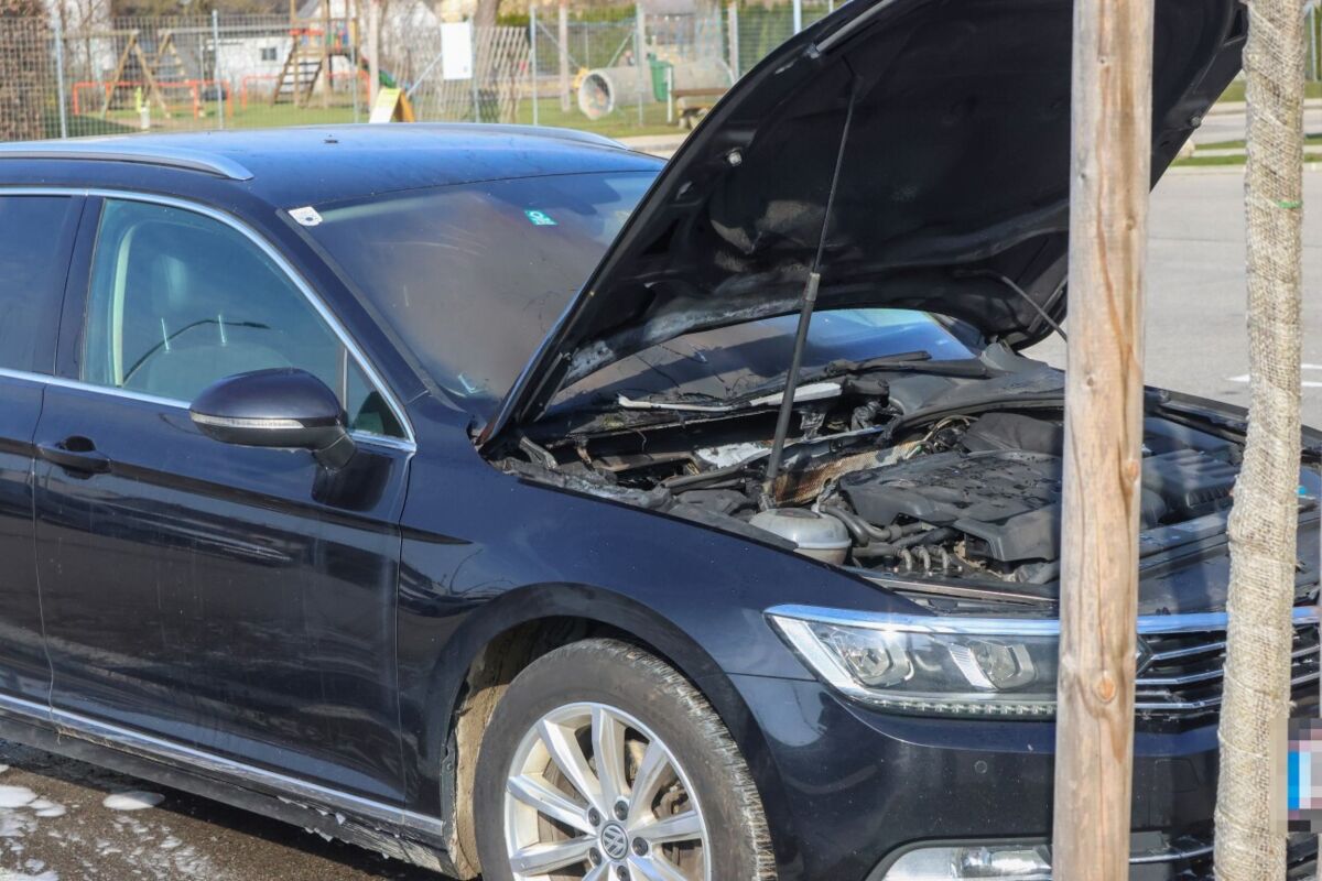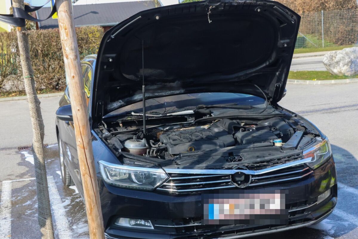 Autobrand auf Supermarktparkplatz in Lambach schnell unter Kontrolle