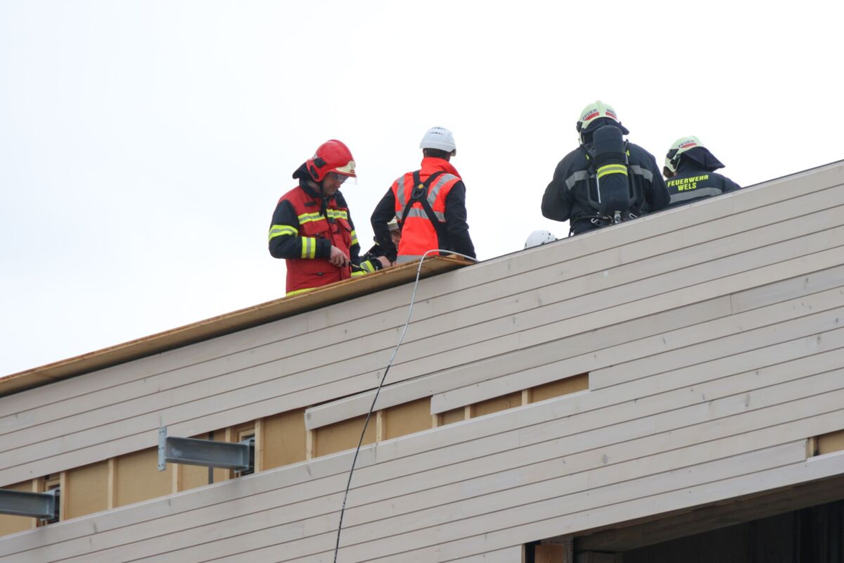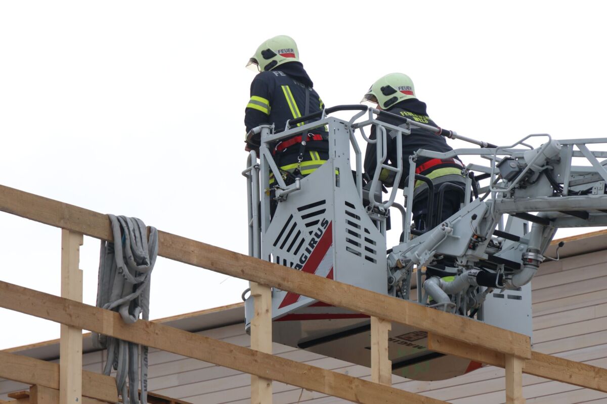 Die Einsatzkräfte wurden mit dem Einsatzbegriff „Brand im Dachbereich“ zu einer Baustelle im Welser Stadtteil Puchberg alarmiert. Auf dem Dach des in Bau befindlichen Firmengebäudes ist es bei Flämmarbeiten zu einem Brand der Dachisolierung gekommen.