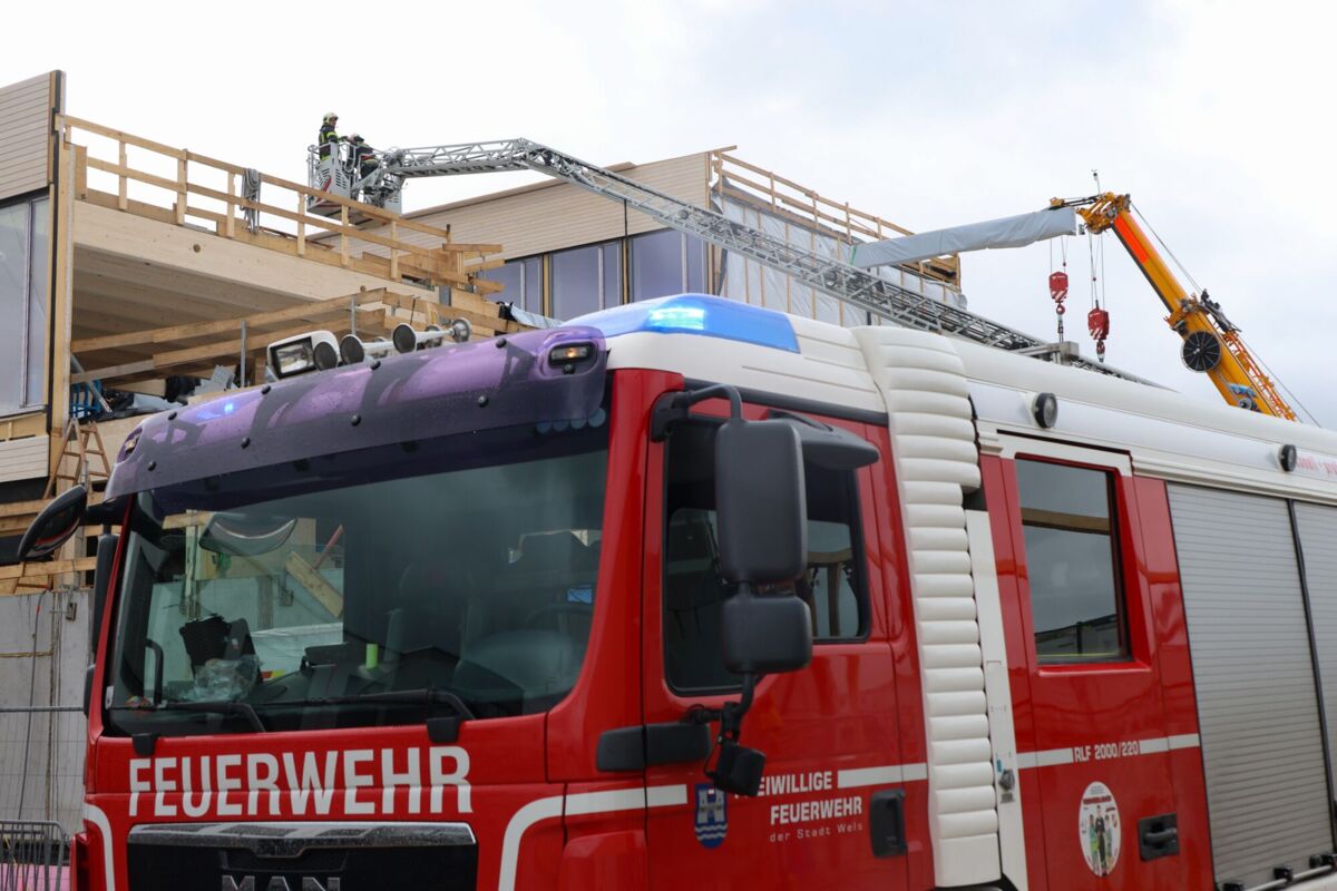 WELS. Auf einer Baustelle im Stadtteil Puchberg ist am Donnerstagnachmittag im Dachbereich eines neuen Firmengebäudes ein Brand ausgebrochen, der einen Einsatz von Feuerwehr, Rettung und Polizei ausgelöst hat.