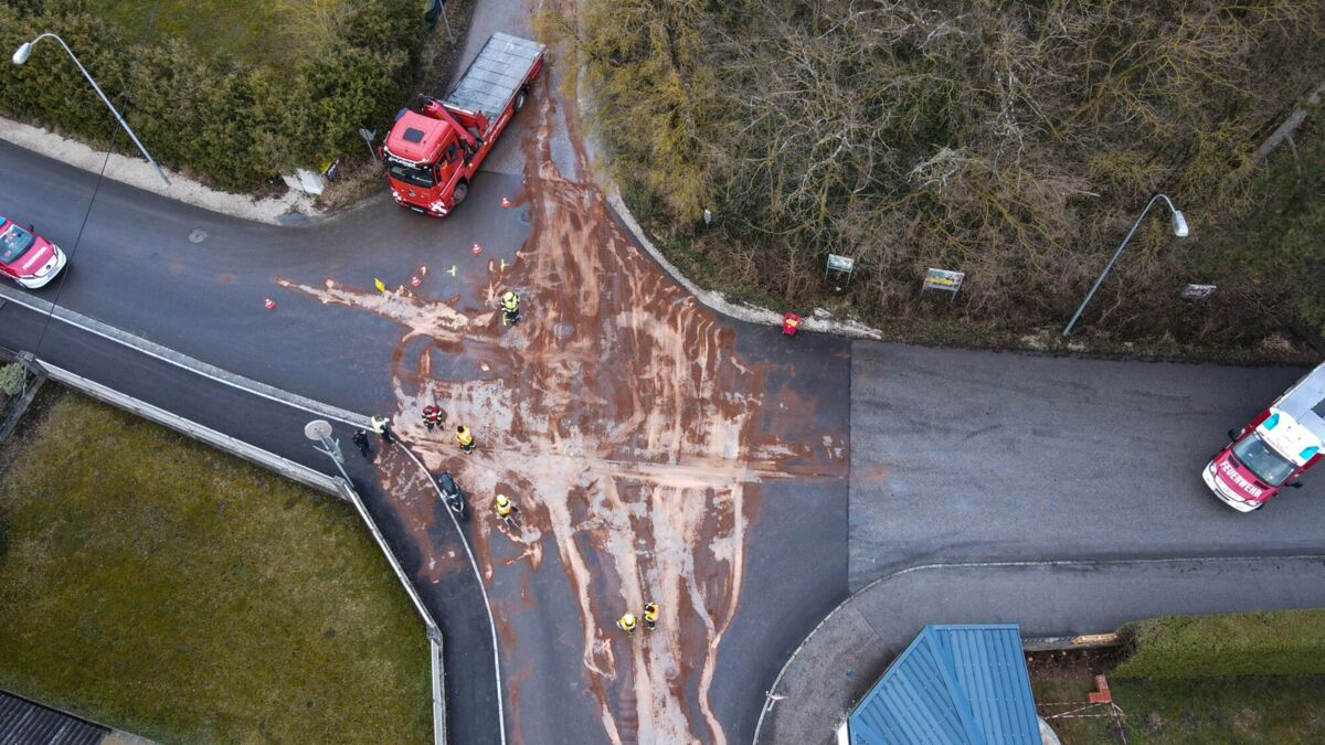 Nach Auftragen des Bindemittels wurde eine Kehrmaschine angefordert, um den Kreuzungsbereich wieder zu reinigen. Der Kreuzungsbereich war für etwa zwei Stunden gesperrt.