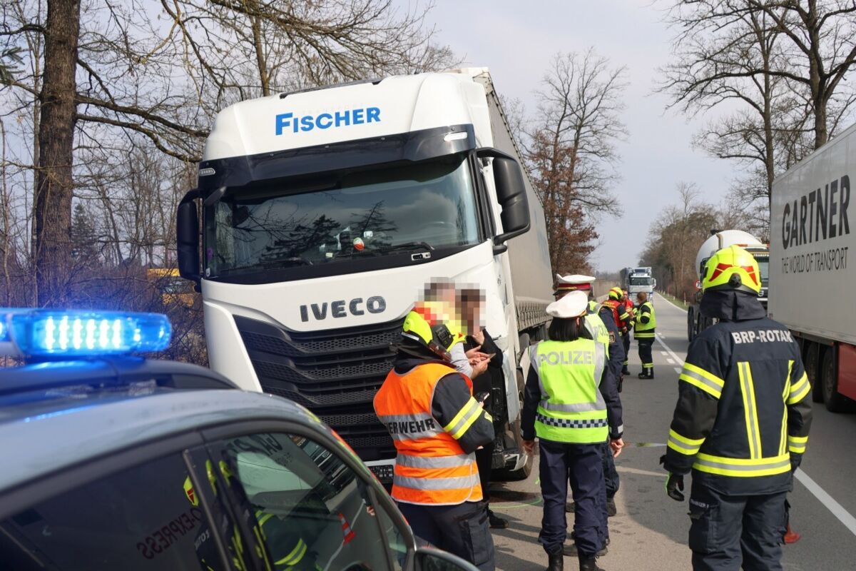 Ersten Informationen zufolge waren ein Lastwagen und ein Auto beteiligt. Die Rettung versorgte mindestens eine Person aus dem Pkw und brachte diese ins Klinikum.