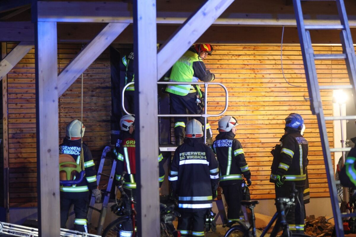 Feuerwehr löscht Brand in Carport in Bad Wimsbach-Neydharting